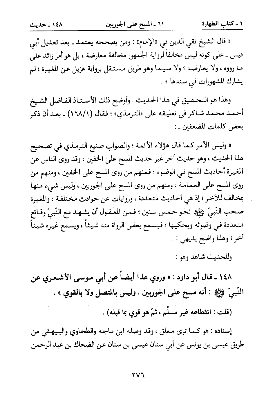 أحمد محمد شاكر في تعليقه على "الترمذي "؛ فقال (1/168) - بعد أن ذكر