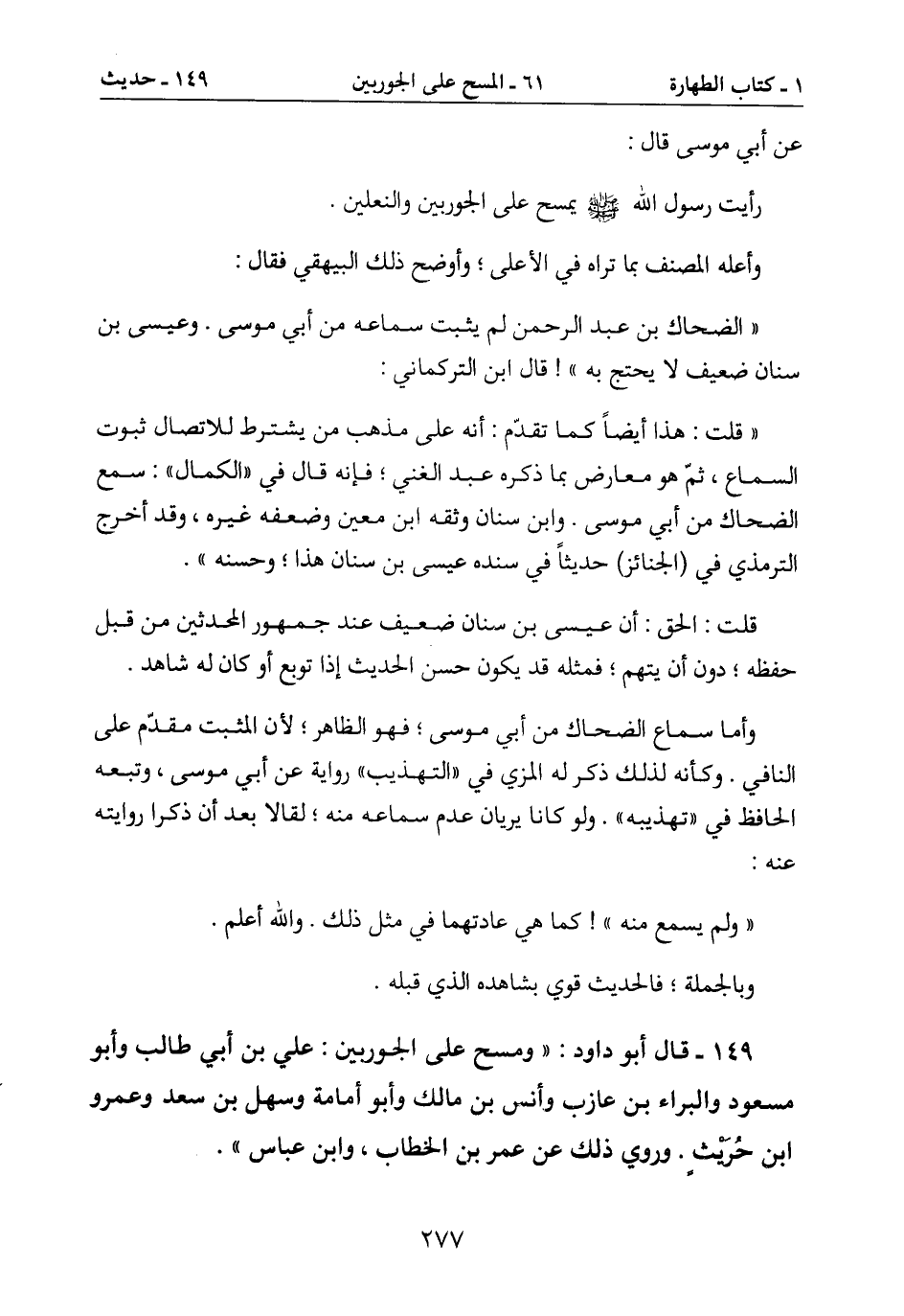 149- قال أبو داود: " ومسح على الجوربين: علي بن أبي طالب وأبو
