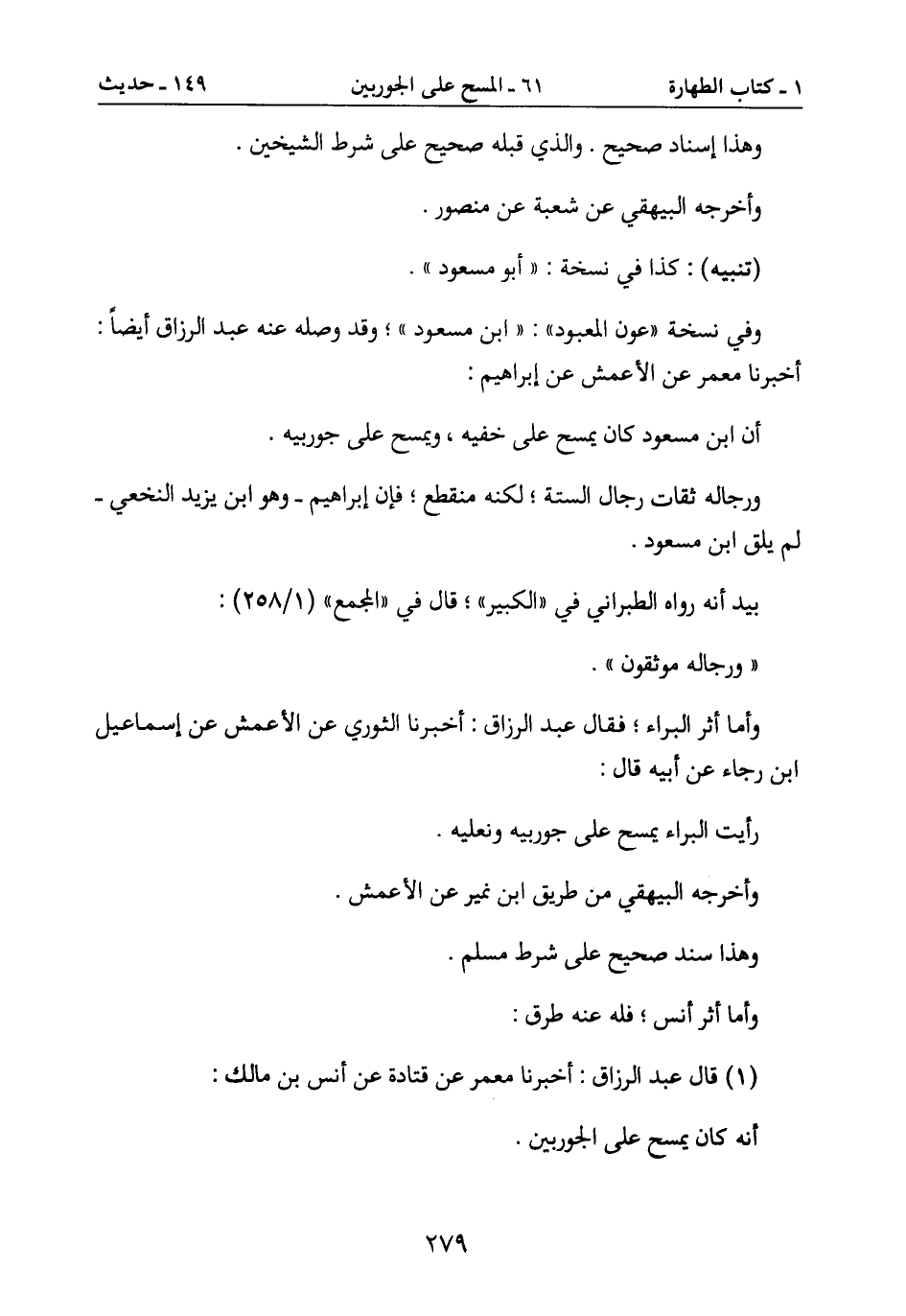 أن ابن مسعود كان يمسح على خفيه، ويمسح على جوربيه.