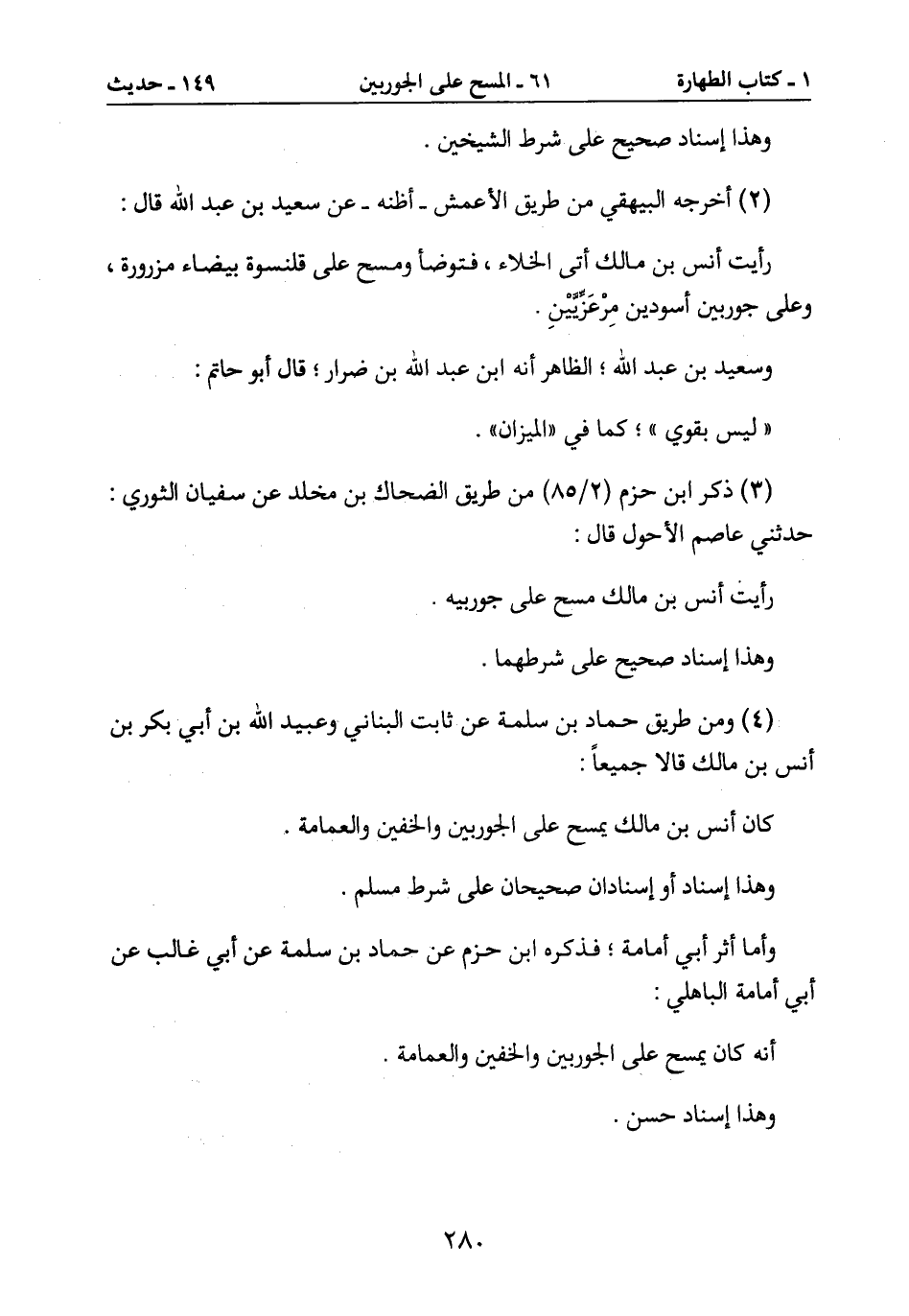 كان أنس بن مالك يمسح على الجوربين والخفين والعمامة.