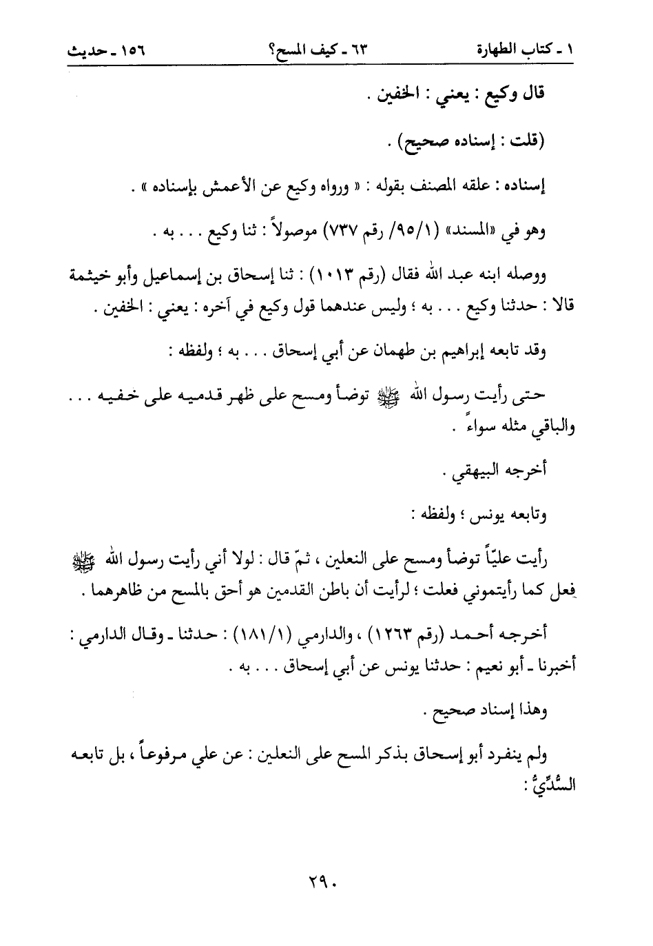 رأيت عليّاً توضأ ومسح على النعلين، ثمّ قال: لولا أني رأيت رسول الله صَلَّى اللَّهُ عَلَيْهِ وَسَلَّمَ