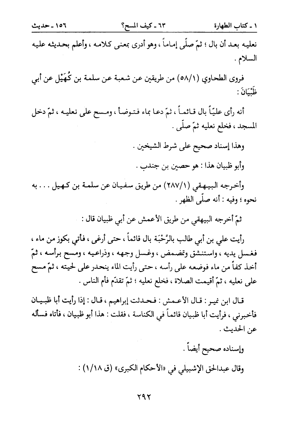 أخذ كفاً من ماء فوضعه على رأسه، حتى رأيت الماء ينحدرعلى لحيته، ثمّ مسح