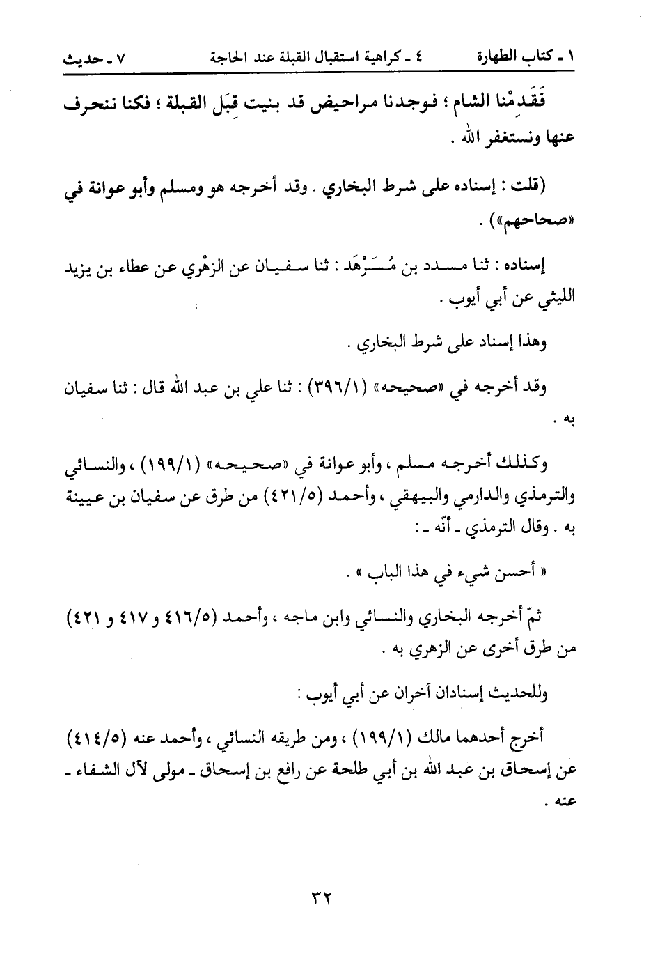 فَقَدِمْنا الشام؛ فوجدنا مراحيض قد بنيت قِبَل القبلة؛ فكنا ننحرف