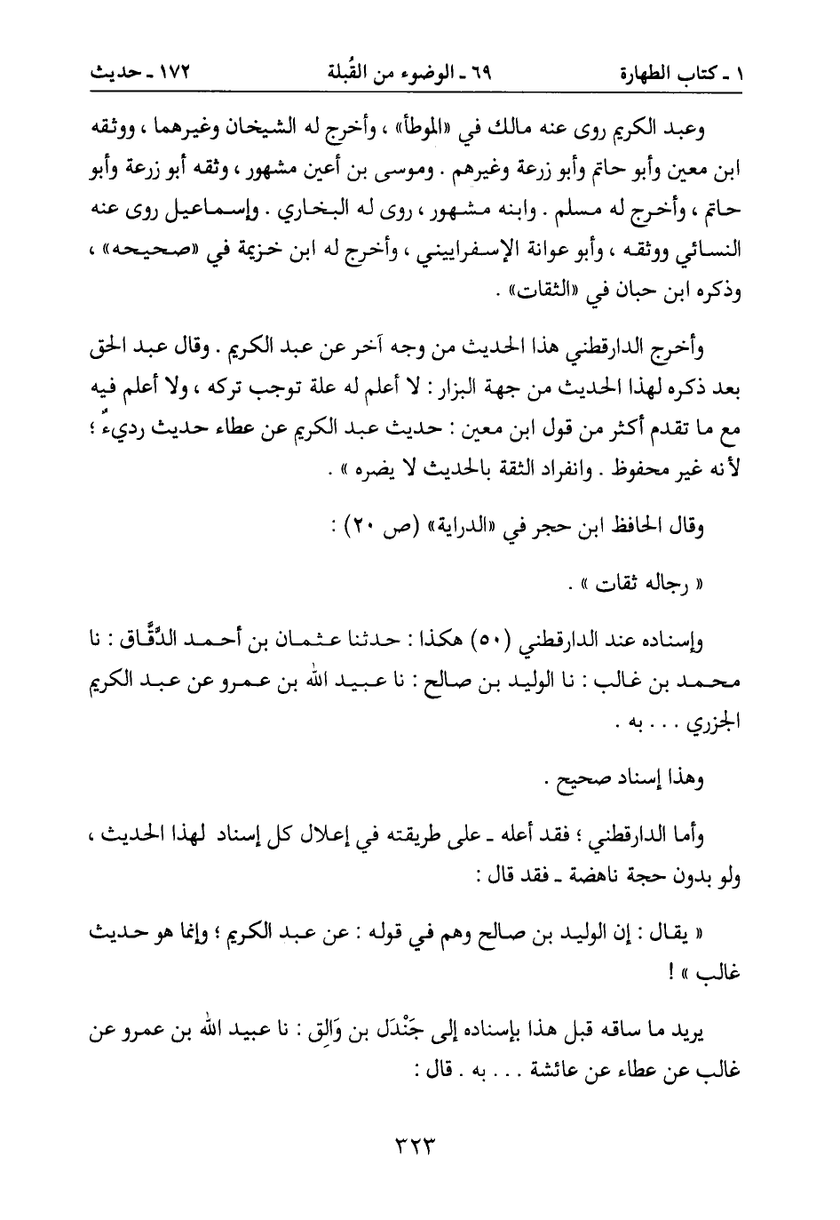 وأخرج الدارقطني هذا الحديث من وجه آخر عن عبد الكريم. وقال عبد الحق