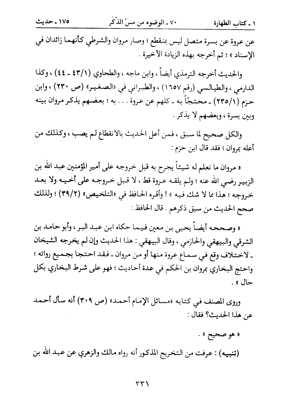حزم (1/235) - محتجّا به - كلهم عن عروة ... به؛ بعضهم يذكر مروان بينه