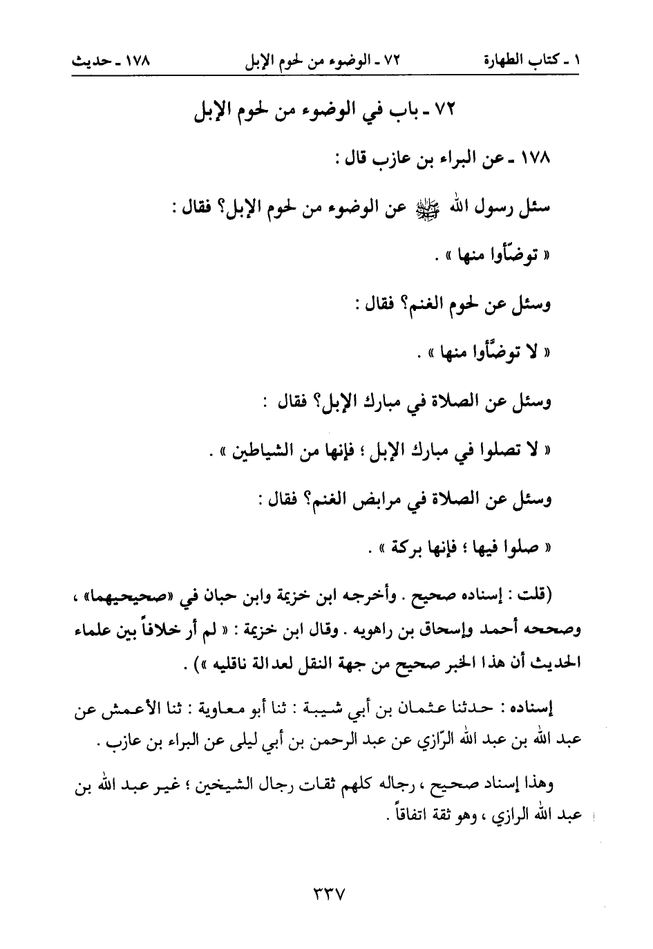 72- باب في الوضوء من لحوم الأبل