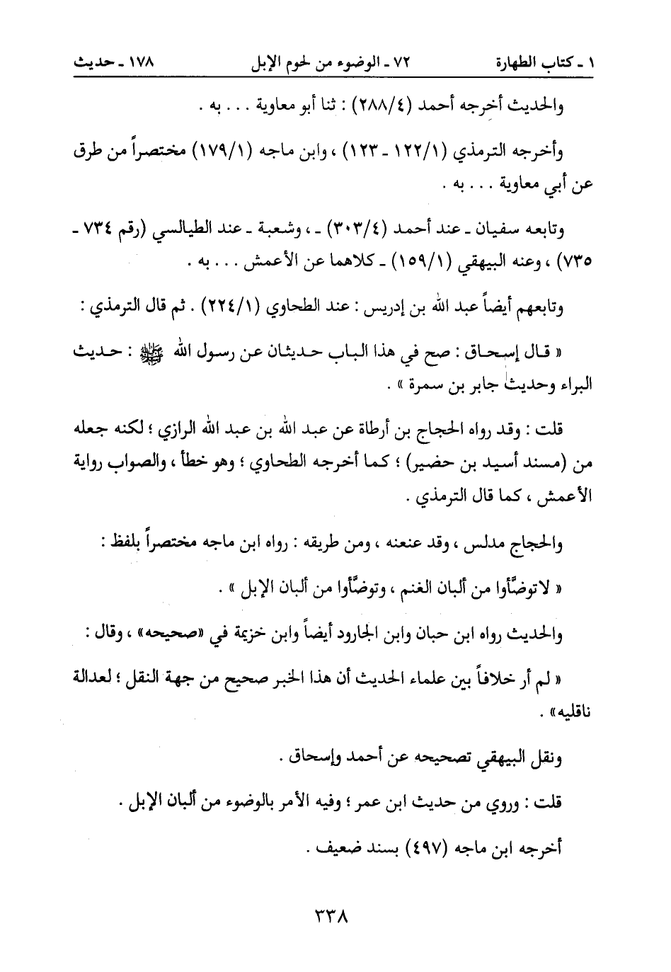 " لا توضأوا من ألبان الغنم، وتوضأوا من ألبان الإبل ".