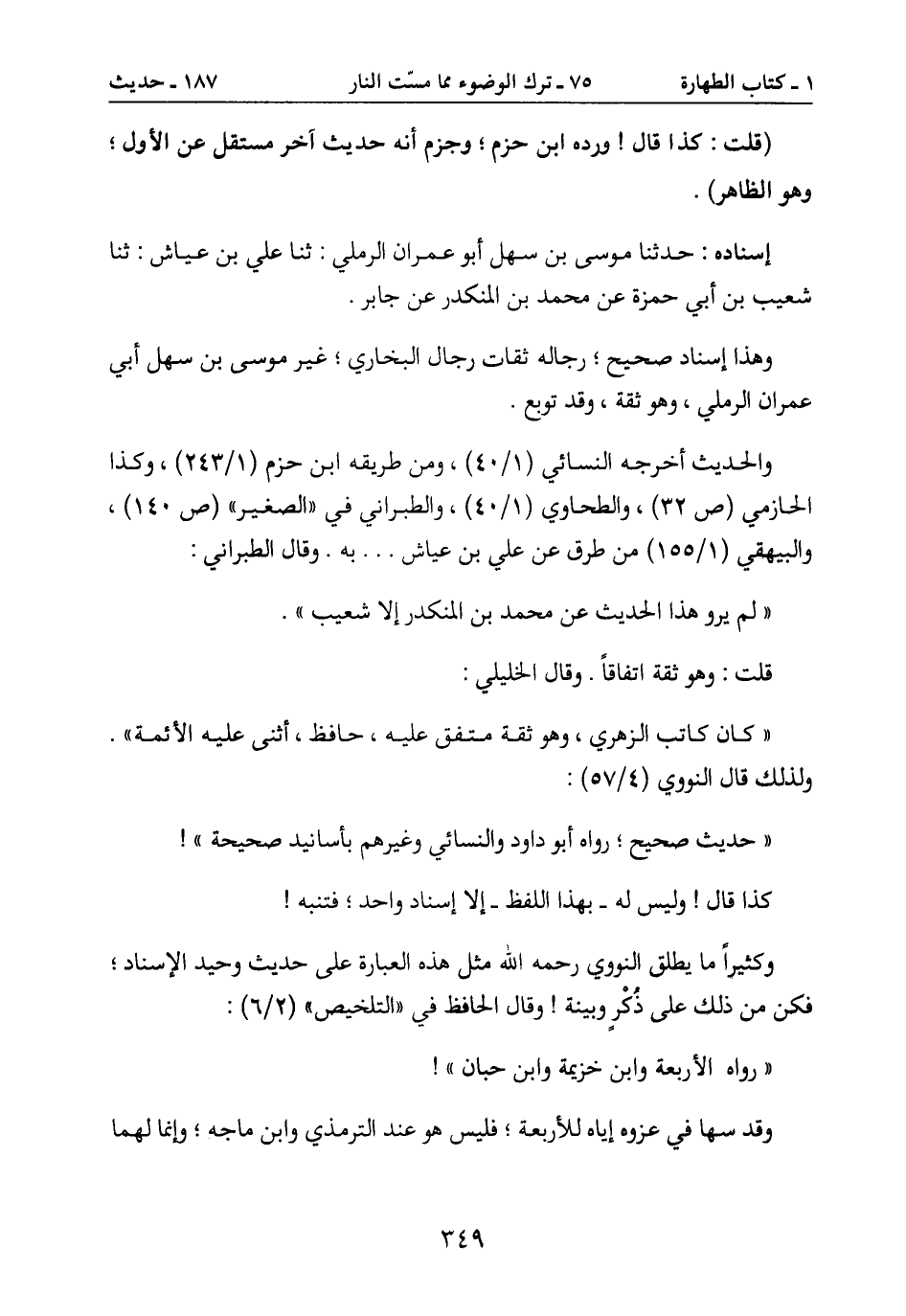 والحديث أخرجه النسائي (1/40) ، ومن طريقه ابن حزم (1/243) ، وكذا