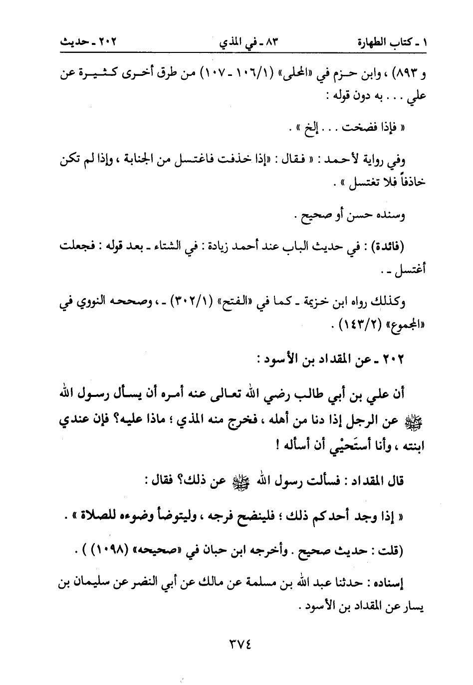 صَلَّى اللَّهُ عَلَيْهِ وَسَلَّمَ عن الرجل إذا دنا من أهله، فخرج منه المذي؛ ماذا عليه؟ فإن عندي