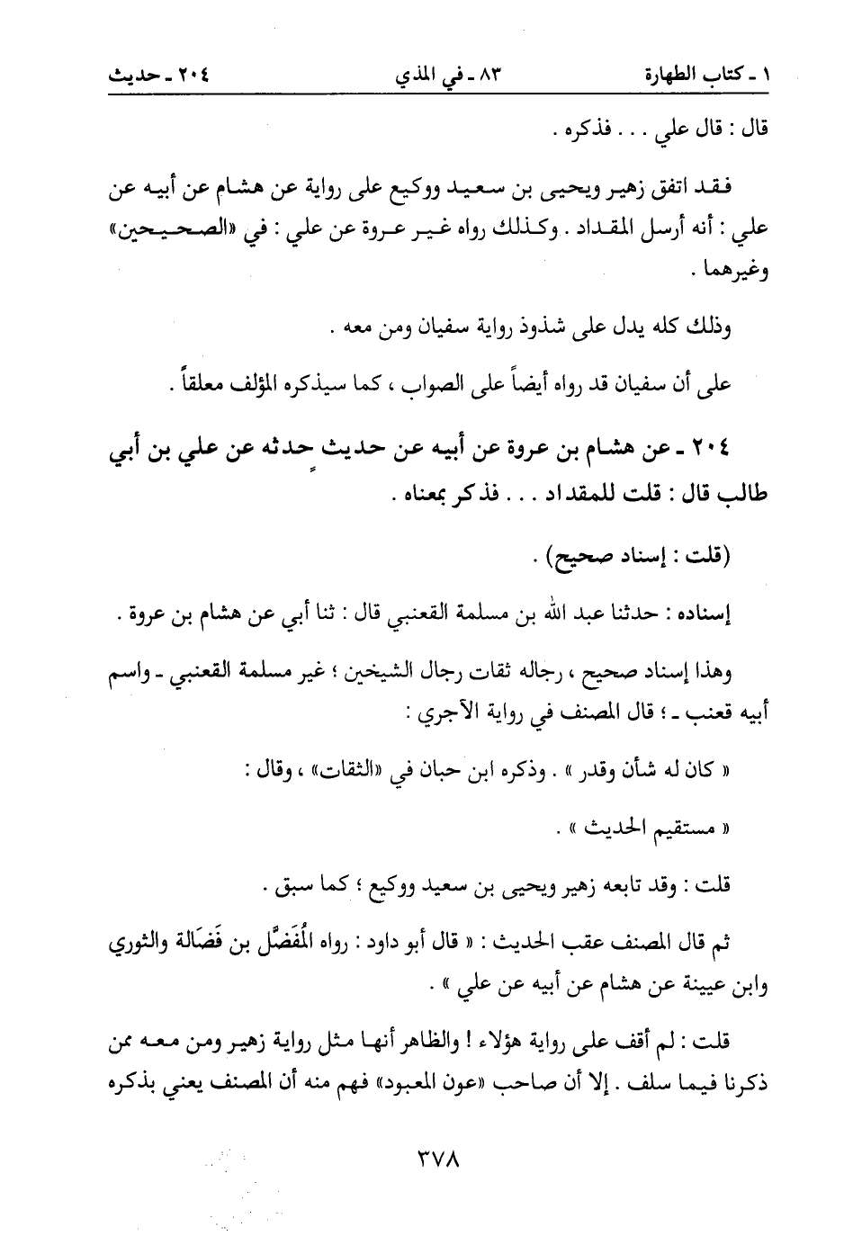 204- عن هشام بن عروة عن أبيه عن حديث حِدثه عن علي بن أبي
