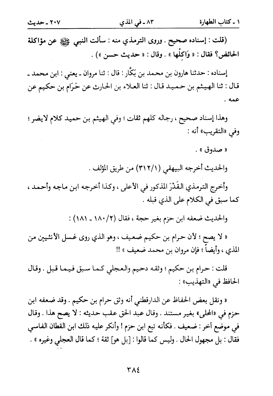" ونقل بعض الحفاظ عن الدارقطني أنه وثق حرام بن حكيم. وقد ضعفه ابن