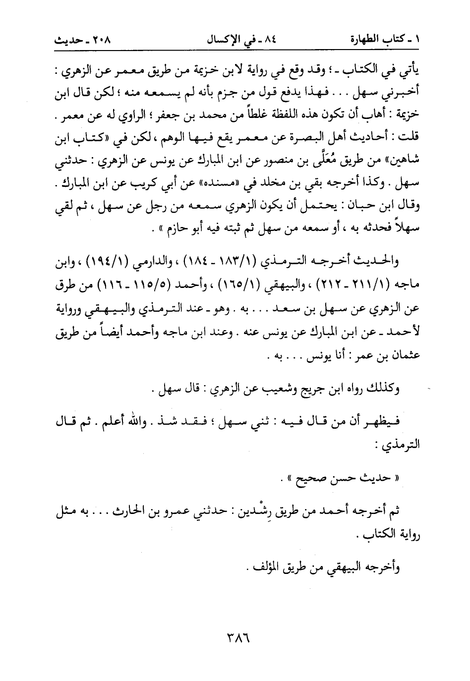 والحديث أخرجه الترمذي (1/183- 184) ، والدارمي (1/194) ، وابن