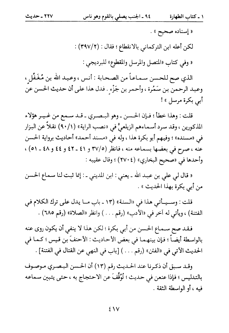 " وفي كتاب "المتصل والمرسل والقطوع " للبرديجي:
