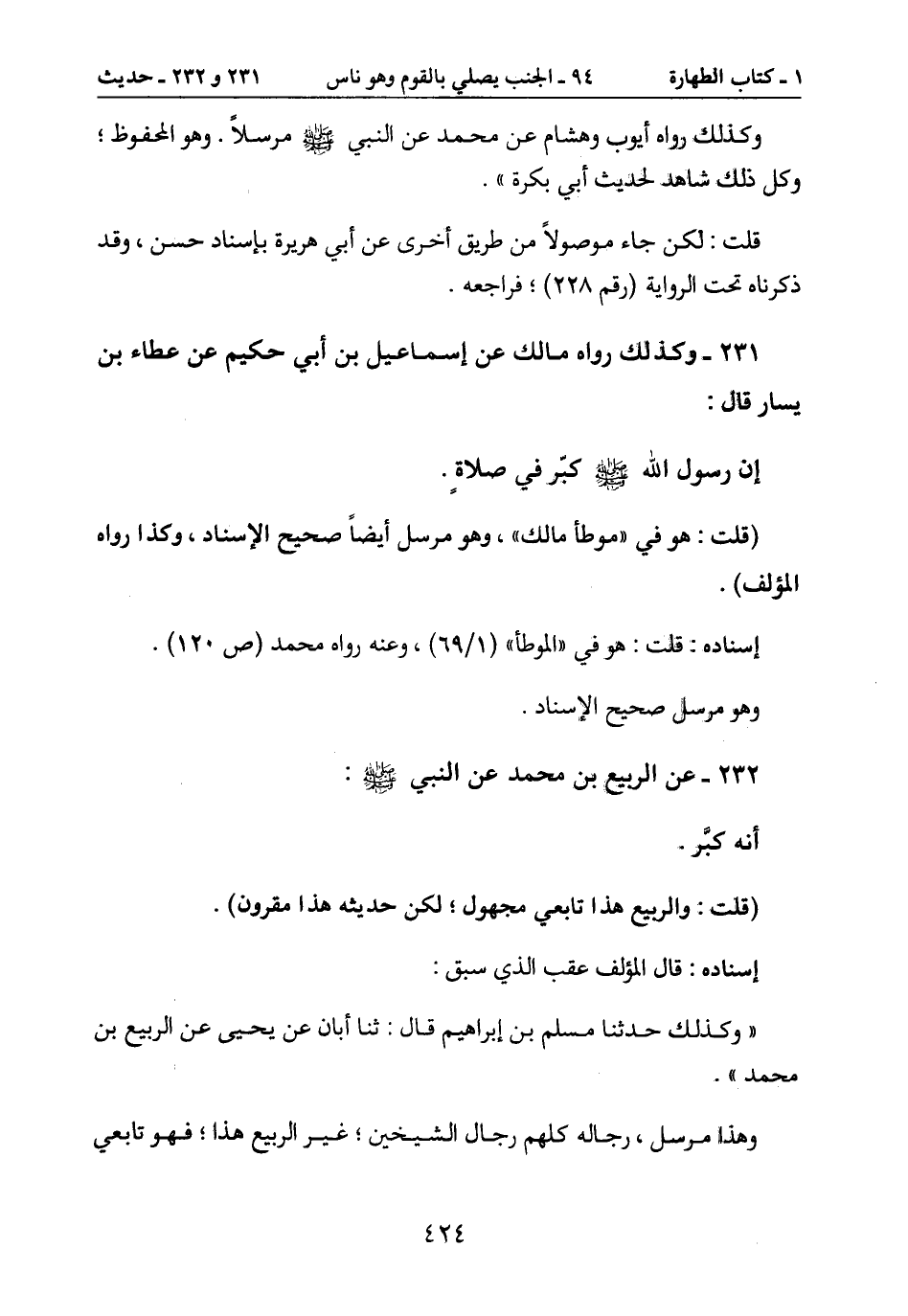 إسناده: قلت: هو في "الموطأ" (1/69) ، وعنه رواه محمد (ص 120) .