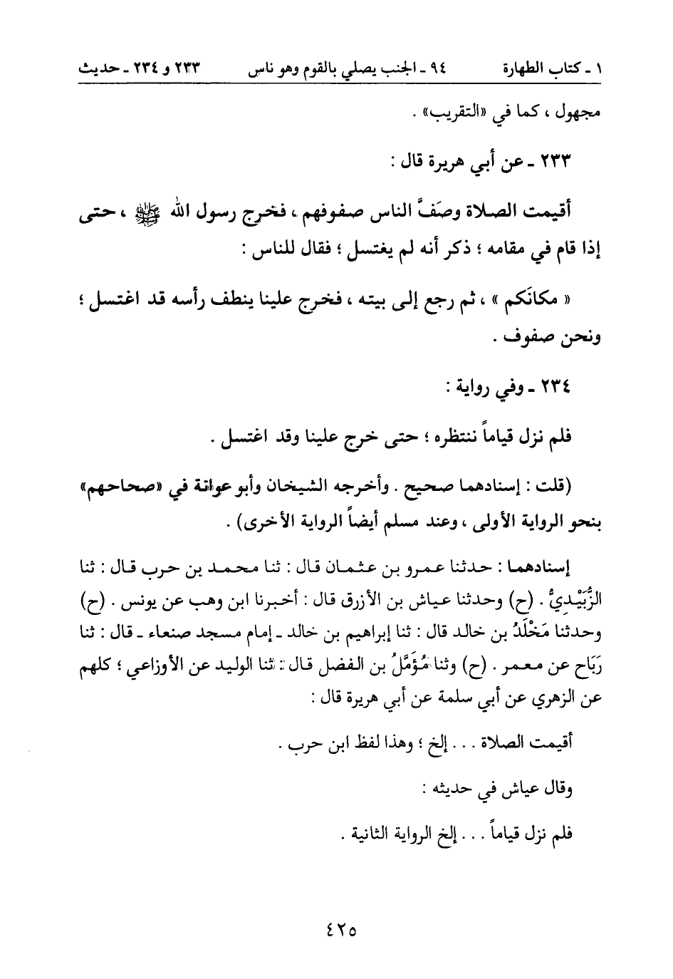 فلم نزل قياماً ننتظره؛ حتى خرج علينا وقد اغتسل.