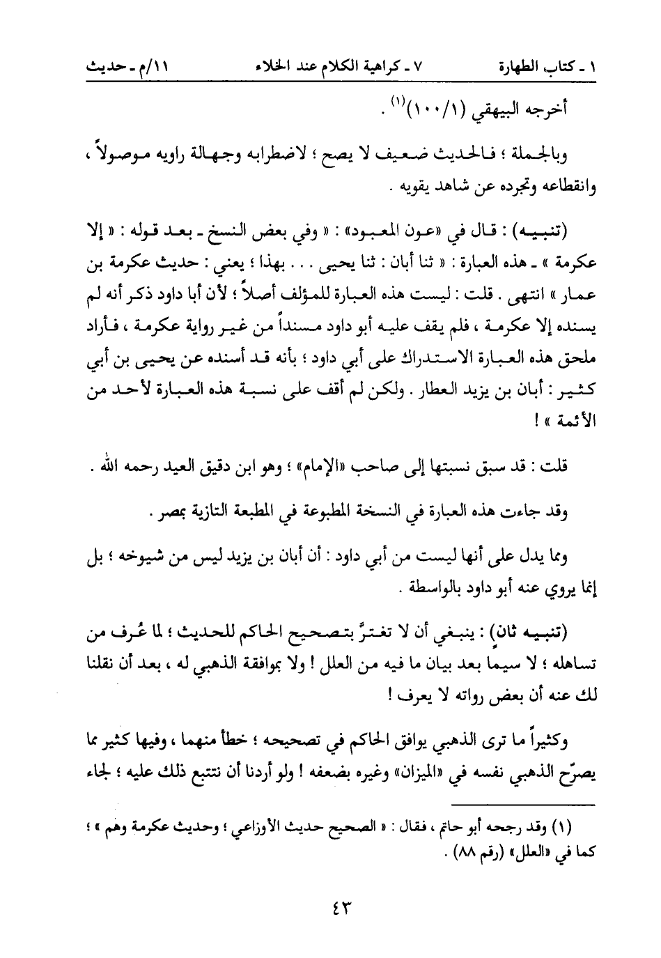 (1) وقد رجحه أبو حاتم، فقال: " الصحيح حديث الأوزاعي؛ وحديث عكرمة وهم "؛