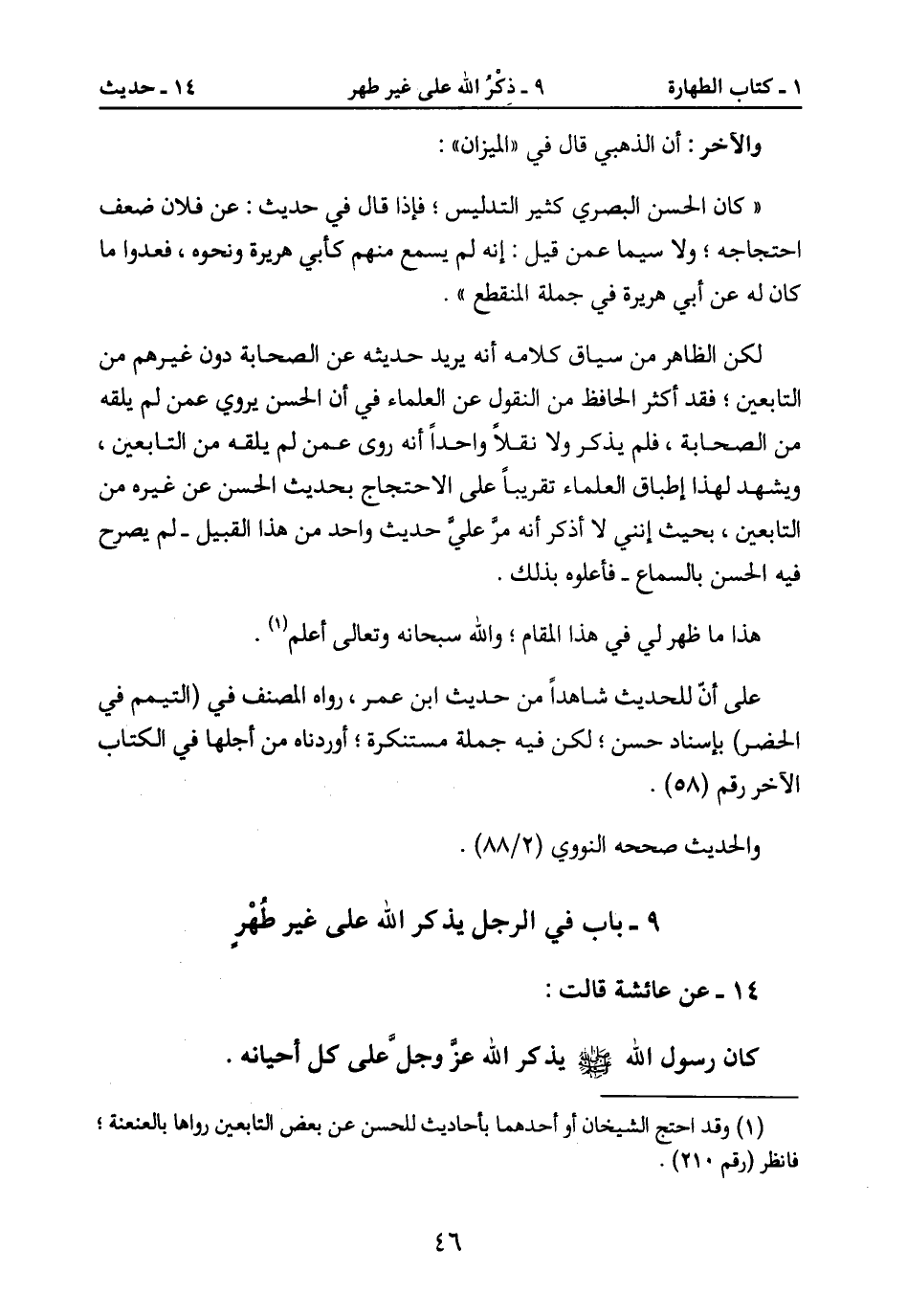 9- باب في الرجل يذكر الله على غيرطُهْرٍ
