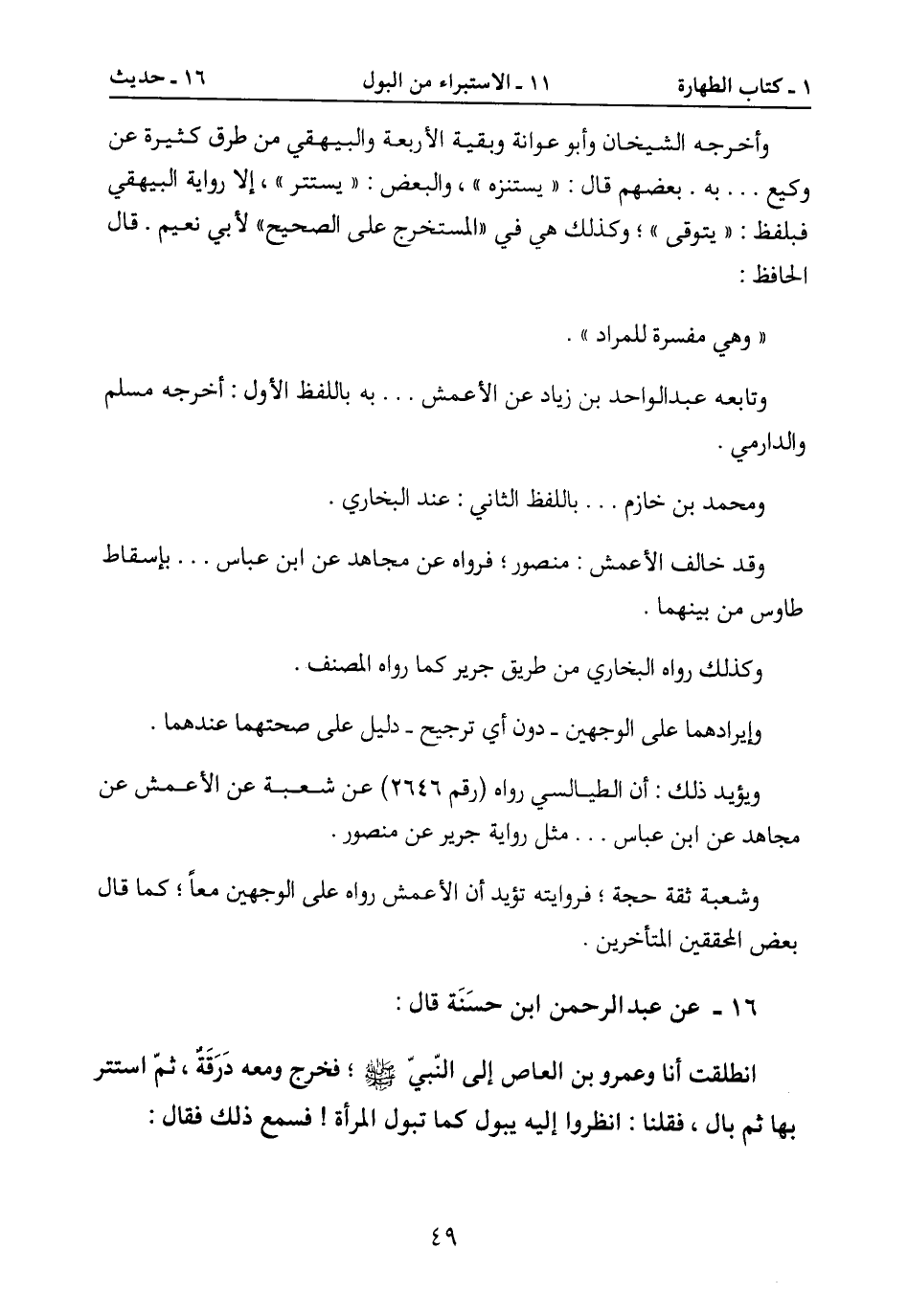 وكيع ... به. بعضهم قال: " يستنزه "، والبعض: " يستتر "، إلا رواية البيهقي