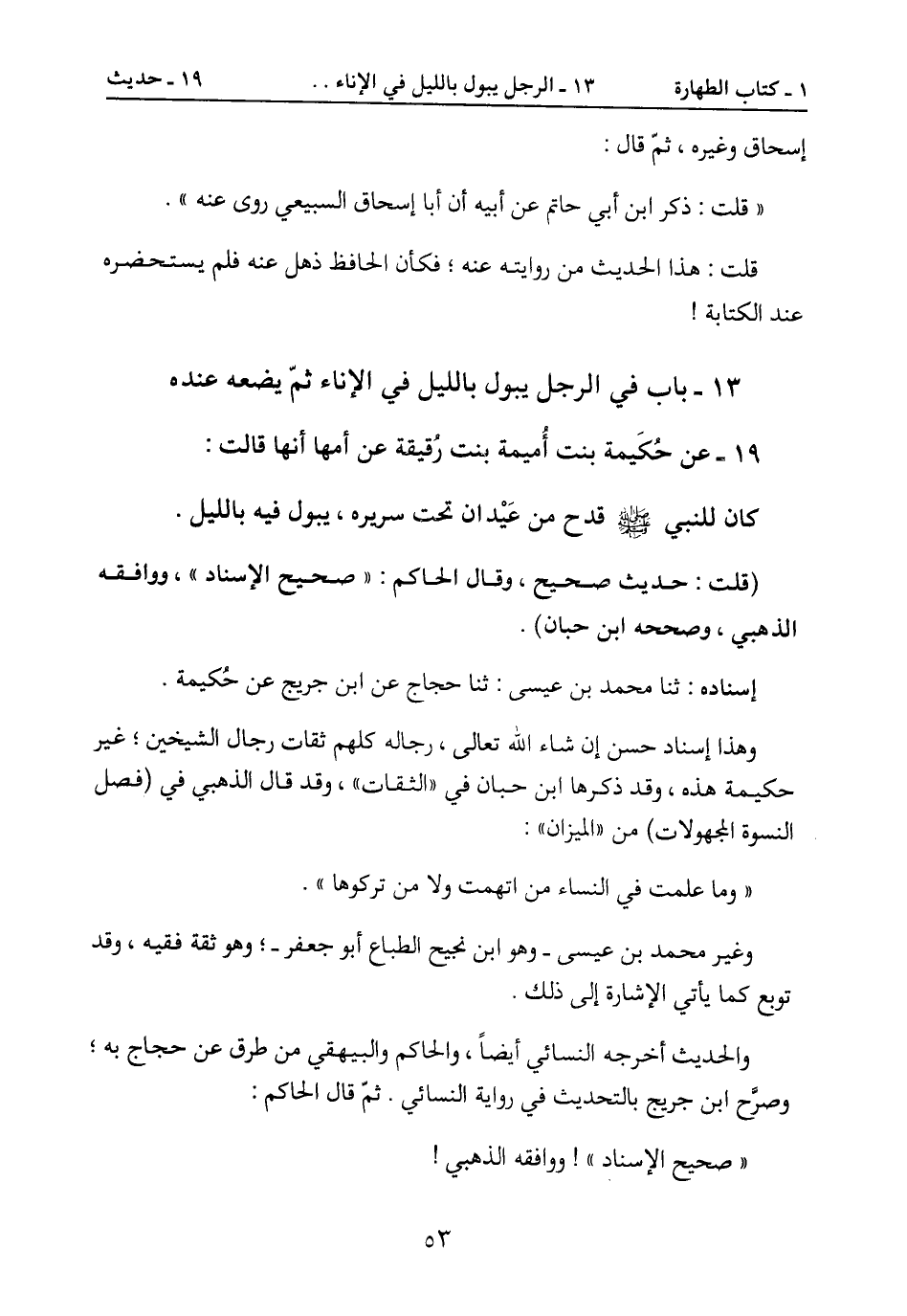 13- باب في الرجل يبول بالليل في الاناء ثمّ يضعه عنده