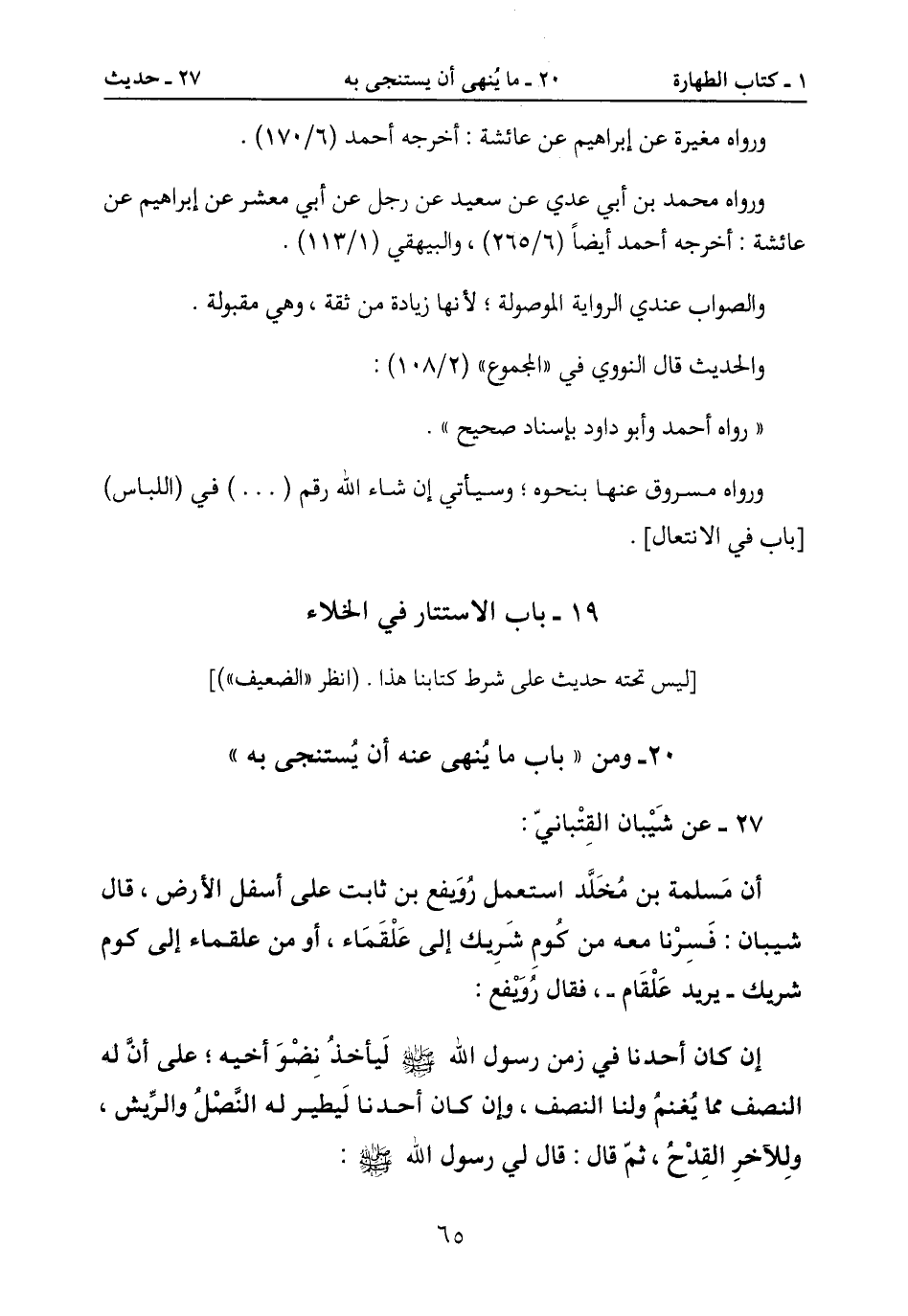 20- ومن " باب ما يُنهى عنه أن يُستنجى به "
