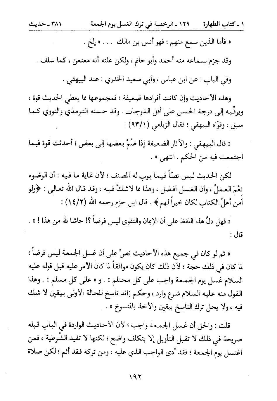 " ثم لو كان في جميع هذه الأحاديث نصٌّ على أن غسل الجمعة ليس فرضاً؛