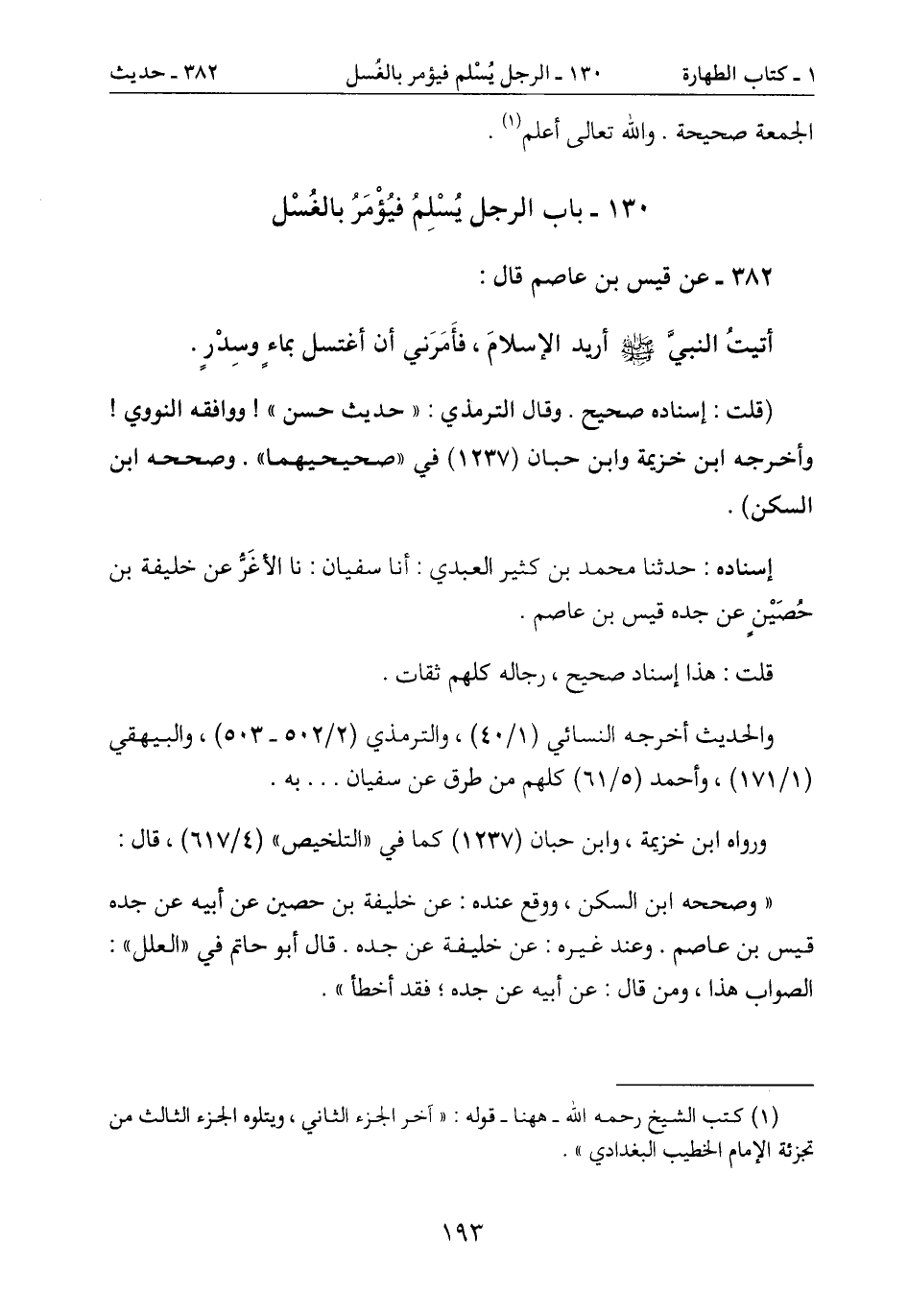 والحديث أخرجه النسائي (1/45) ، والترمذي (2/502- 503) ، والبيهقي
