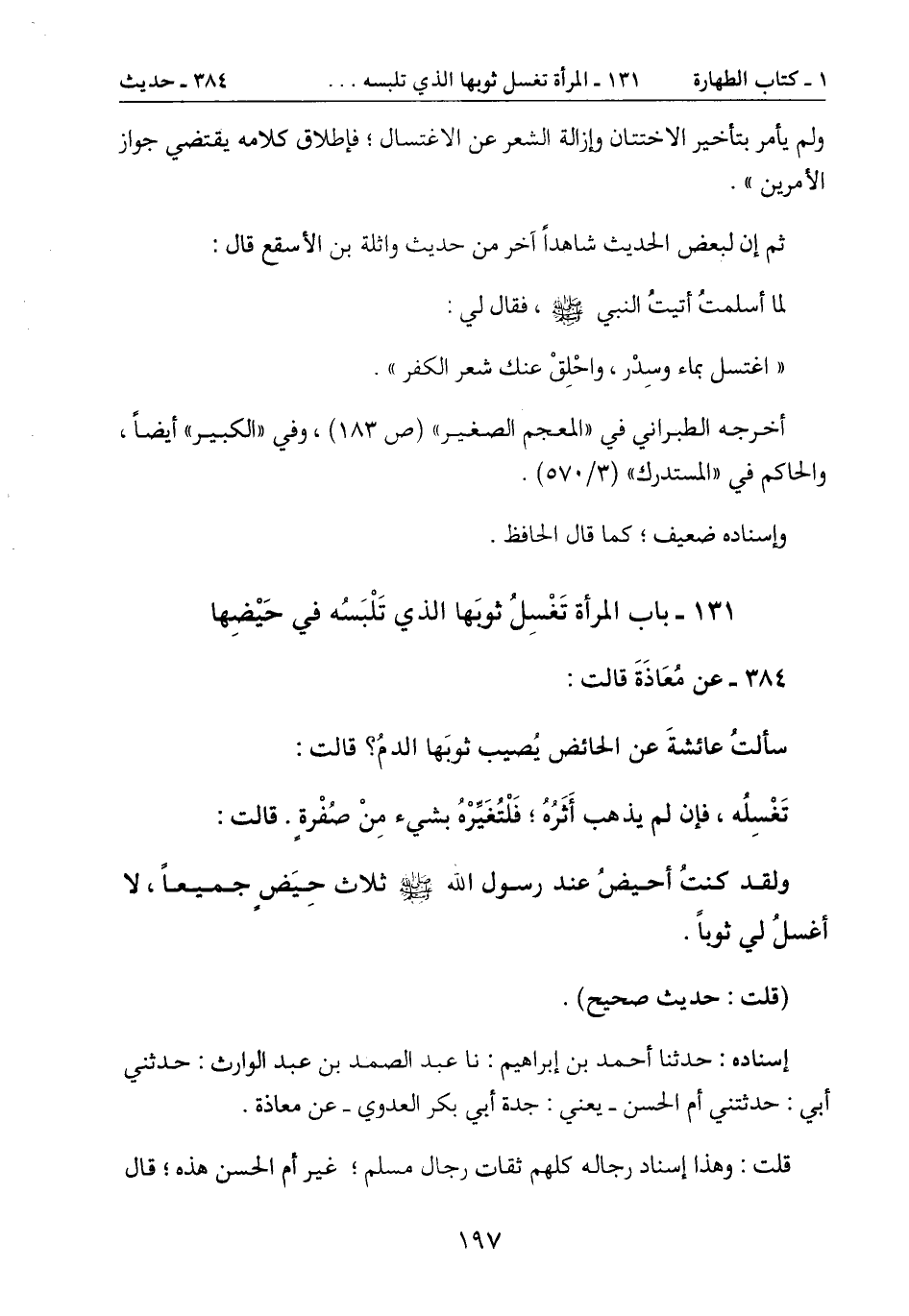 131- باب المرأة تَغْسِلُ ثوبَها الذي تَلْبَسُه في حَيْضِها