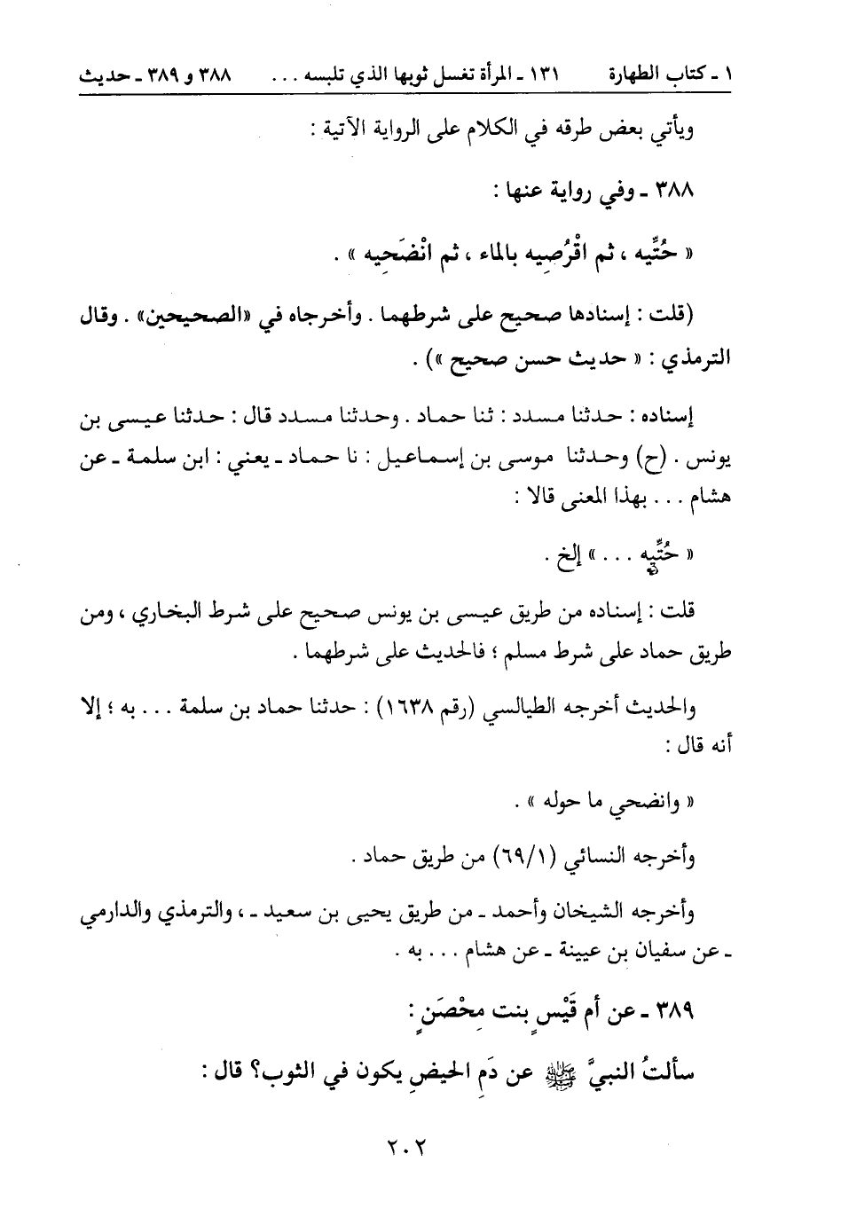 " حُتِّيه، ثم اقْرُصِيه بالماء، ثم انْضَحِيه".