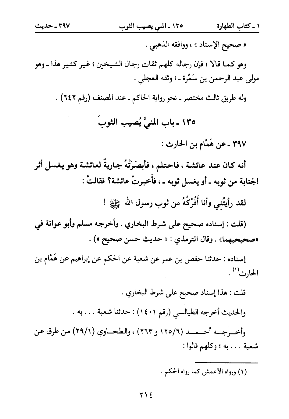 إسناده: حدثنا حفص بن عمر عن شعبة عن الحكم عن إبراهيم عن هَمام بن