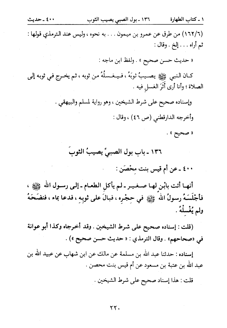 136- باب بول الصبيِّ يصيبُ الثوبَ