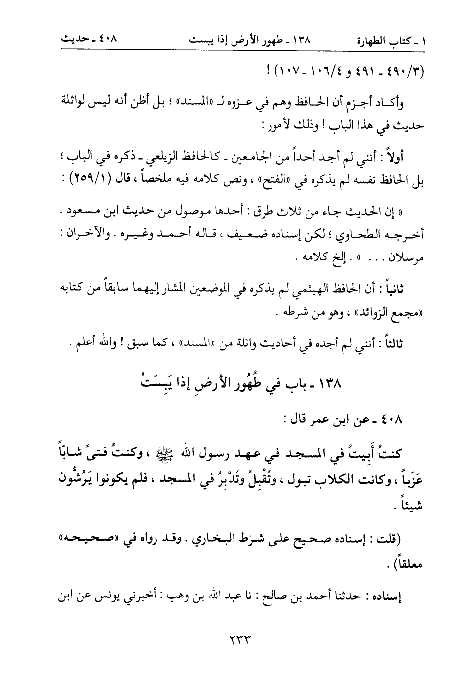 138- باب في طهُور الأرضِ إذا يَبِسَتْ