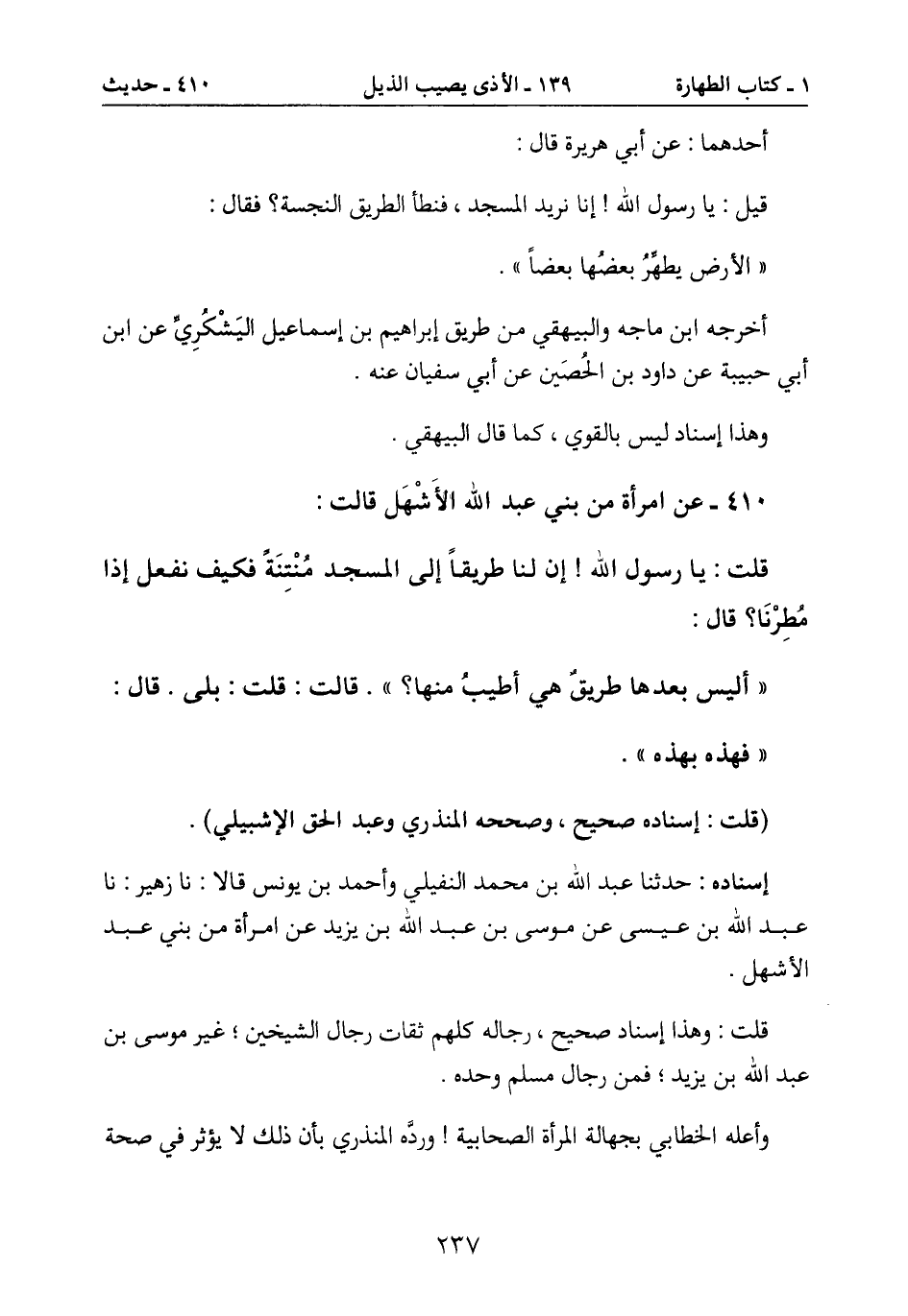 وأعله الخطابي بجهالة المرأة الصحابية! وردَّه المنذري بأن ذلك لا يوثر في صحة