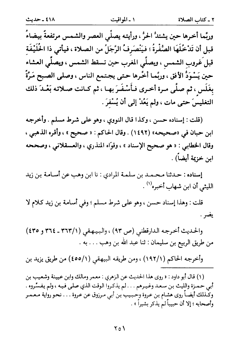 وربما أخرها حين يشتدُ الحرُ، ورأيته يصلِّي العصر والشمس مرتفعةٌ بيضاءُ