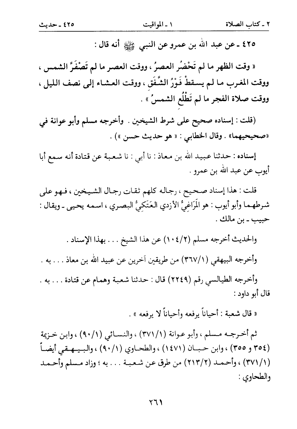 425- عن عبد الله بن عمروعن النبي صَلَّى اللَّهُ عَلَيْهِ وَسَلَّمَ أئه قال: