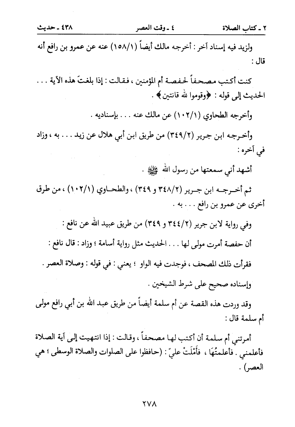 فأعلمني. فأعلمتهَا، فآمْلَتْ عليّ: (حافظوا على الصلوات والصلاة الوسطى؛ هي
