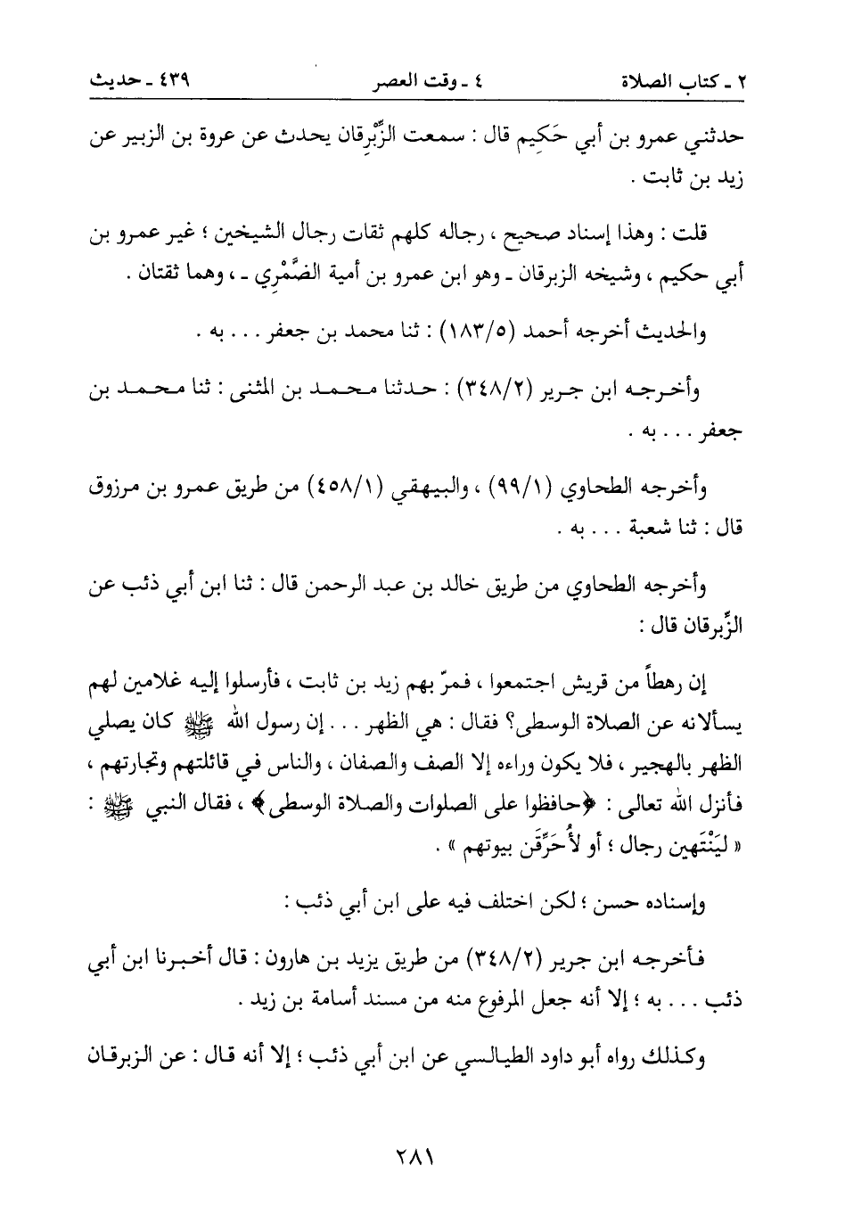 يسألانه عن الصلاة الوسطى؟ فقال: هي الظهر ... إن رسول الله صَلَّى اللَّهُ عَلَيْهِ وَسَلَّمَ كان يصلي