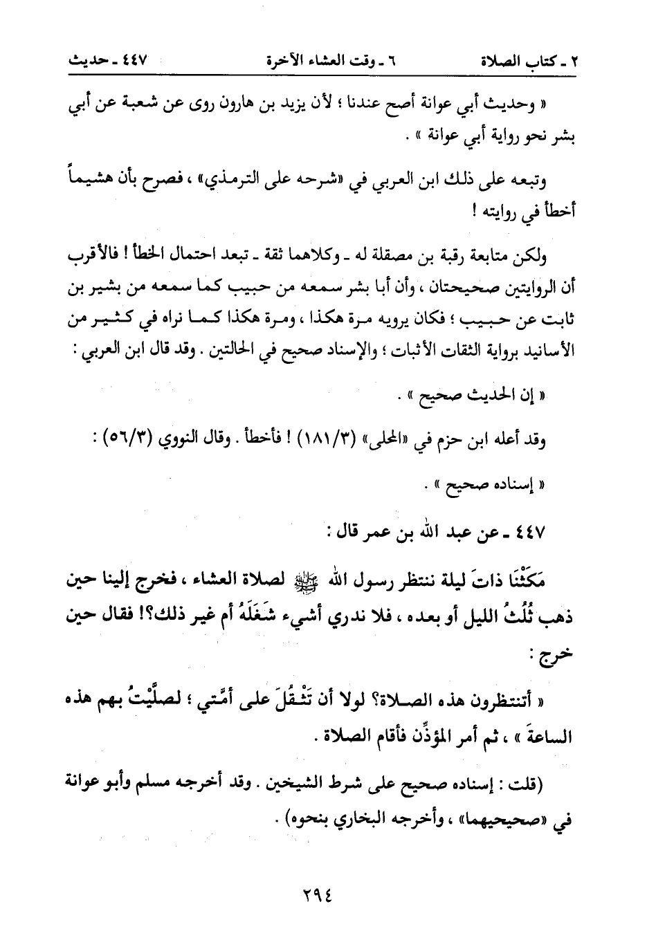 " أتنتظرون هذه الصلاة؟ لولا أن تَثْقلَ على امتي؛ لصليْتُ بهم هذه