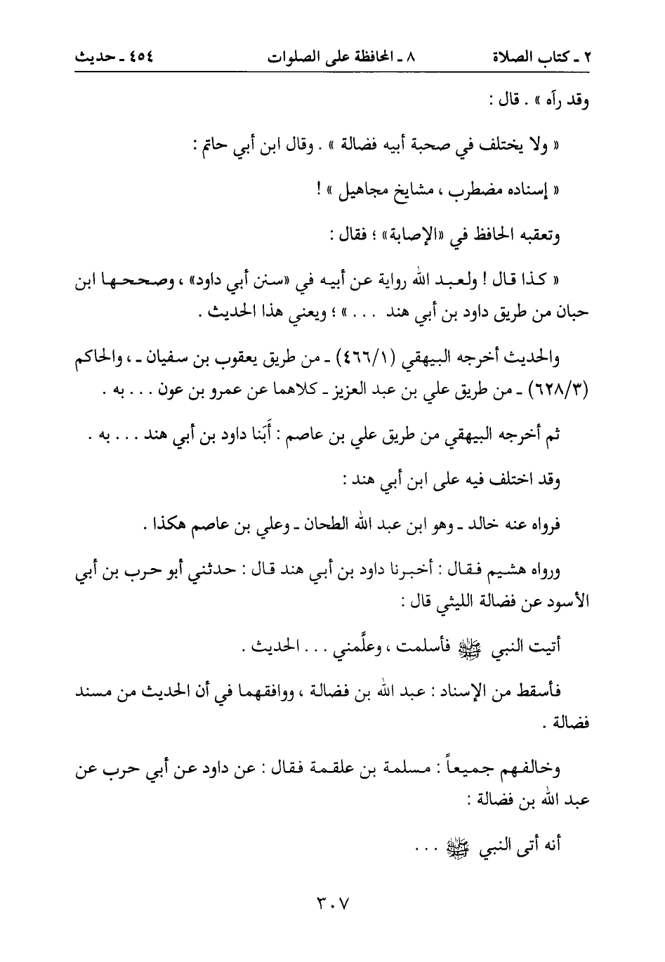 " ولا يختلف في صحبة أبيه فضالة ". وقال ابن أبي حاتم: