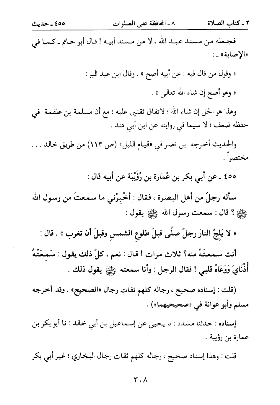 455- عن أبي بكر بن عُمَارة بن رُؤيبَة عن أبيه قال: