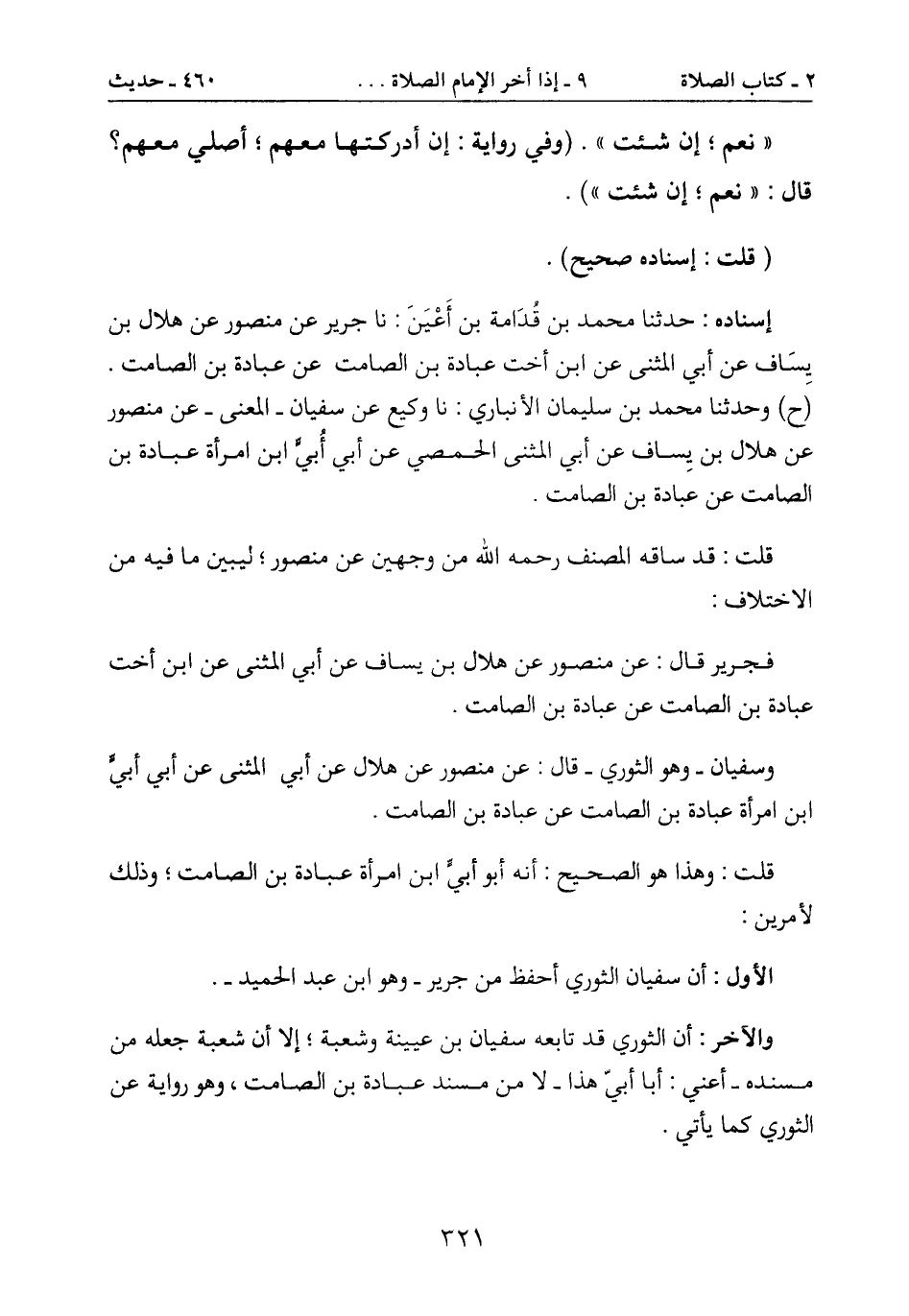 والأخر: أن الثوري قد تابعه سفيان بن عيينة وشعبة؛ إلا أن شعبة جعله من