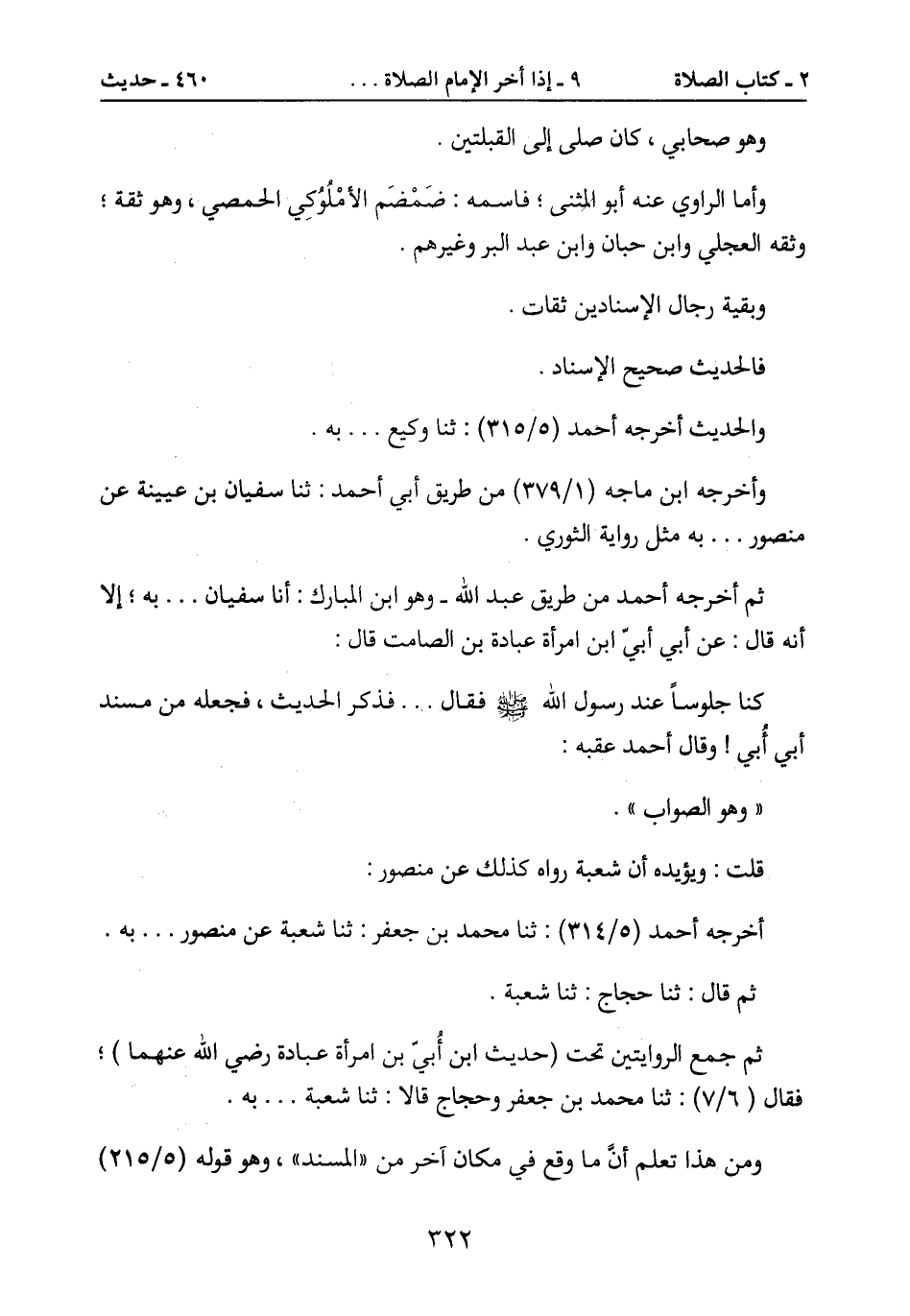 ومن هذا تعلم أنَ ما وقع في مكان آخر من "المسند"، وهو قوله (5/215)