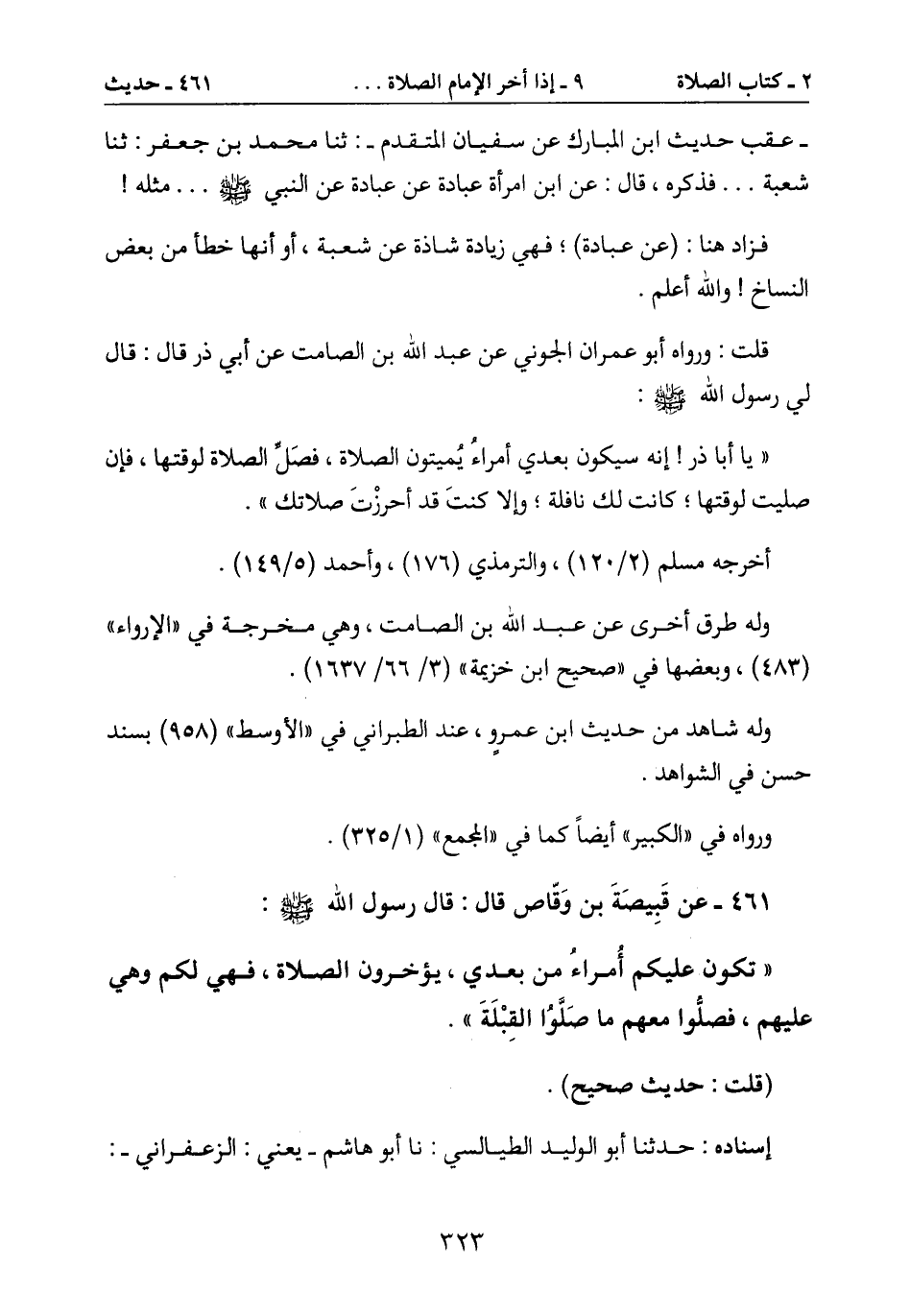 " يا أبا ذر! إنه سيكون بعدي أمراء يميتون الصلاة، فصَل الصلاة لوقتها، فإن