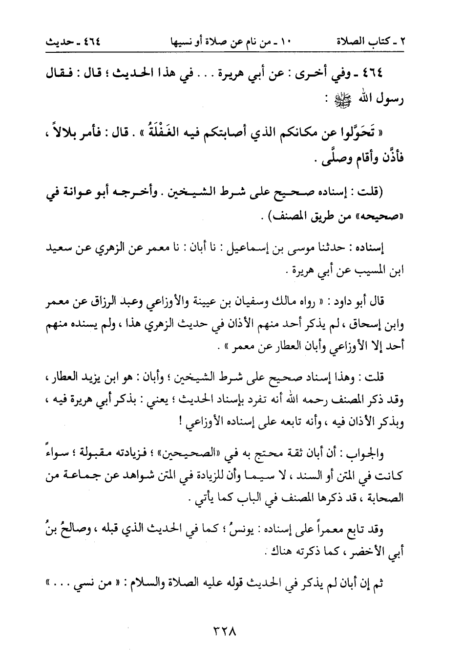 ثم إن أبان لم يذكر في الحديث قوله عليه الصلاة والسلام: " من نسي ... "