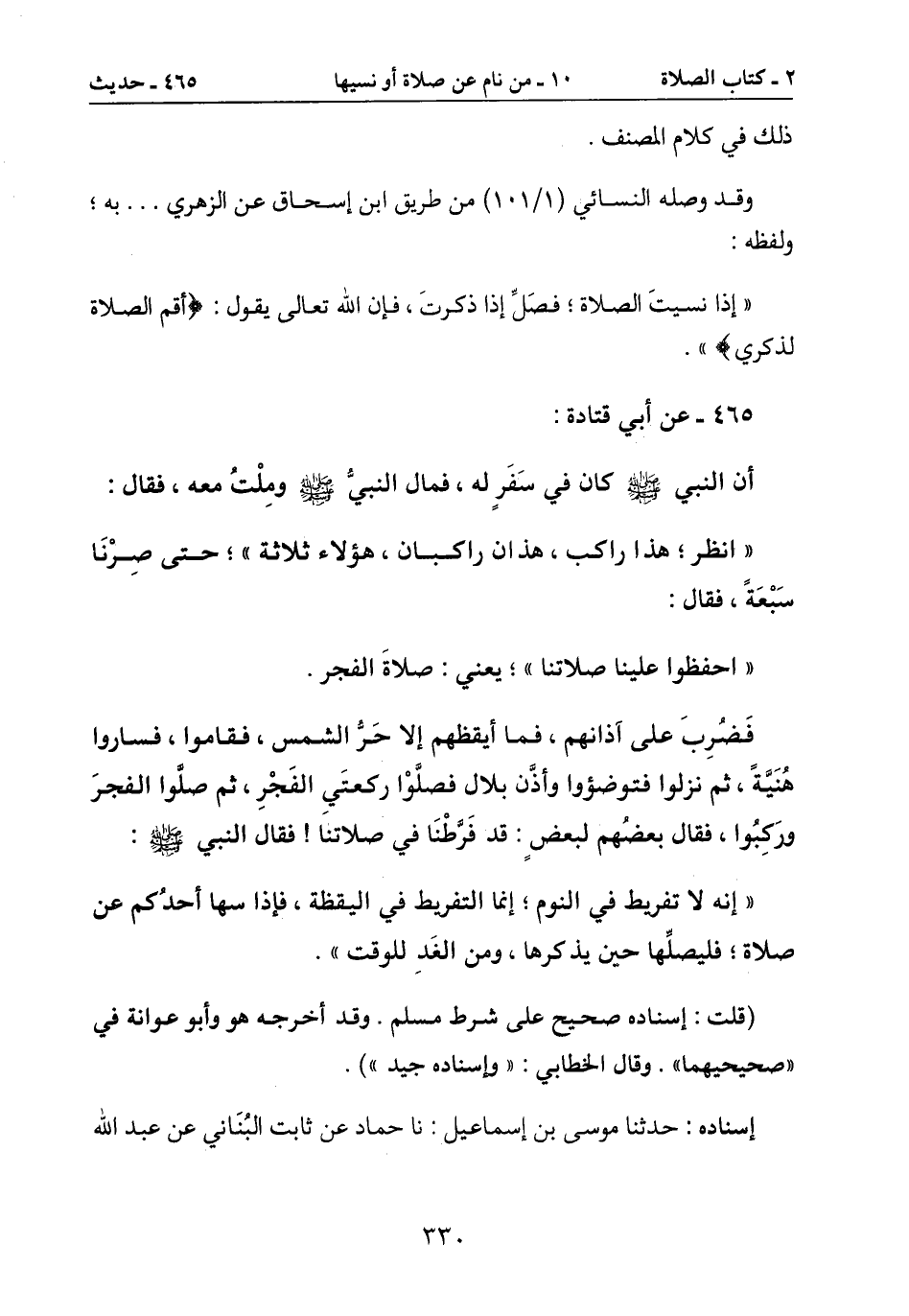 " إنه لا تفريط في النوم؛ إنما التفريط في اليقظة، فإذا سها أحدكم عن