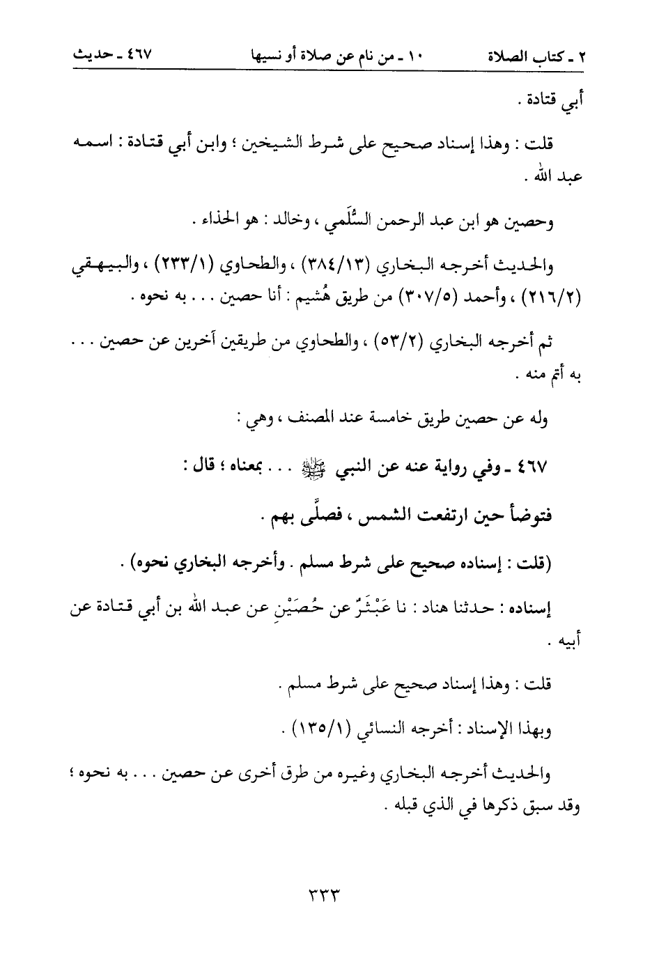 إسناده: حدثنا هناد: نا عَبْثَرٌ عن حُصَيْنِ عن عبد الله بن أبي قتادة عن