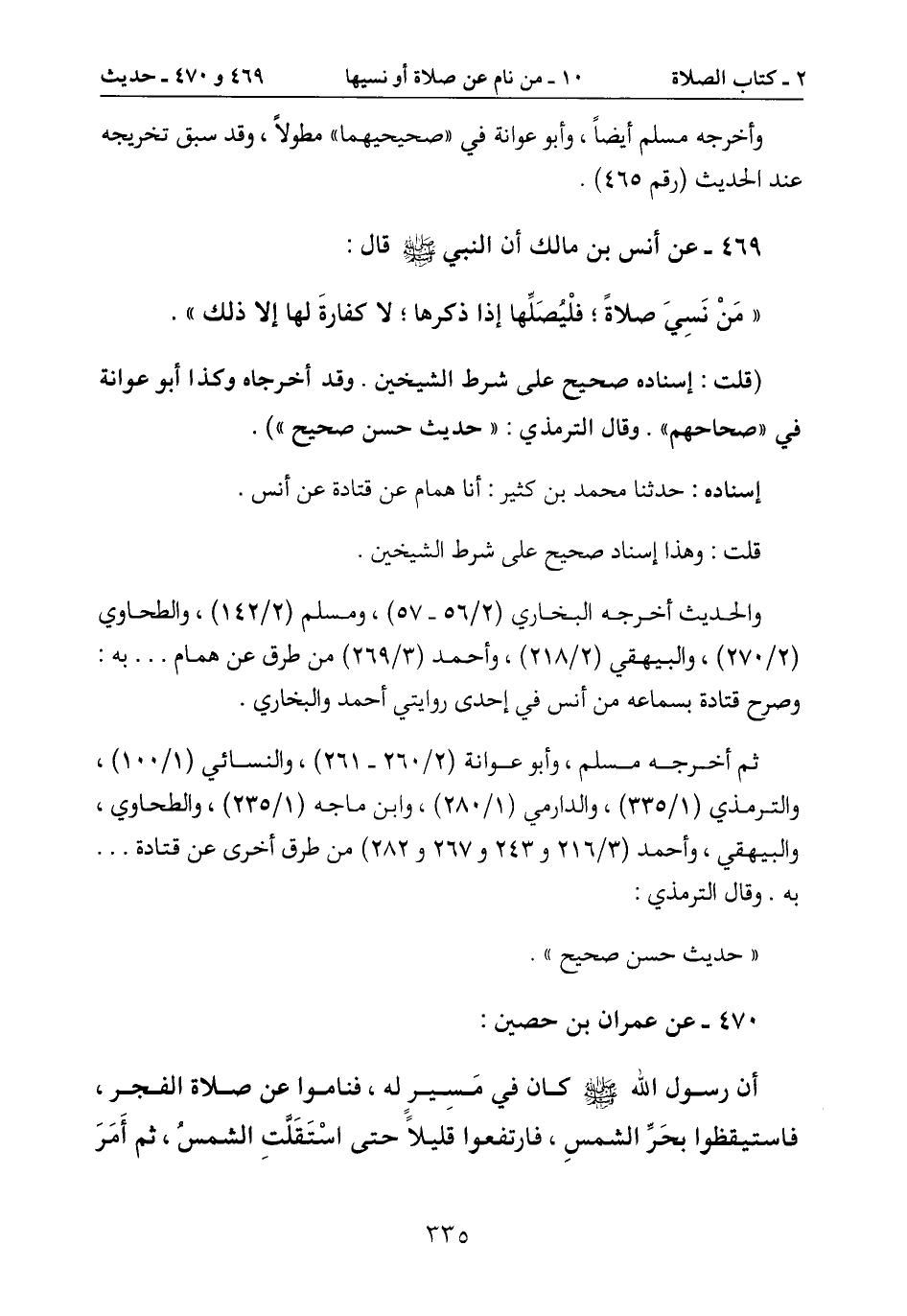 469- عن أنس بن مالك أن النبي صَلَّى اللَّهُ عَلَيْهِ وَسَلَّمَ قال: