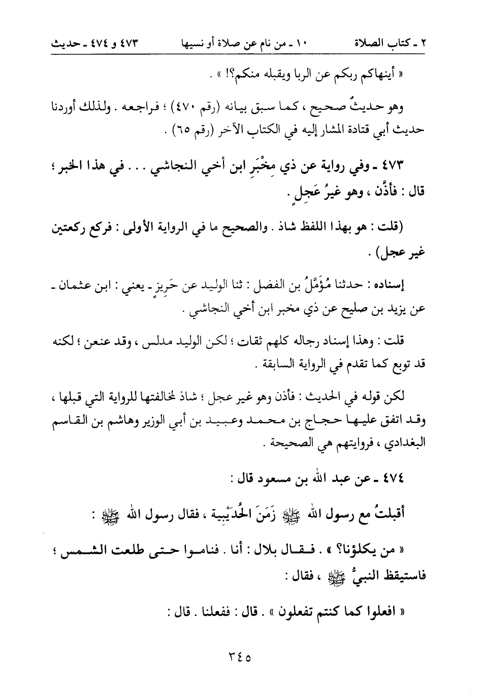 حديث أبي قتادة المشار إليه في الكتاب الآخر (رقم 65) .