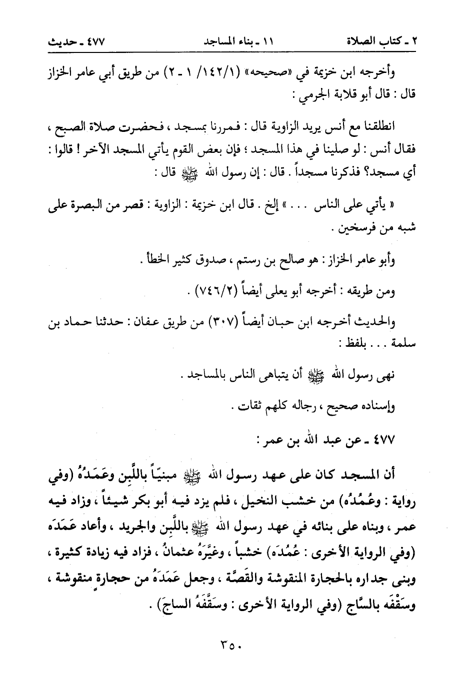 رواية: وعمُده) من خشب النخيل، فلم يزد فيه أبو بكر شيئاً، وزاد فيه