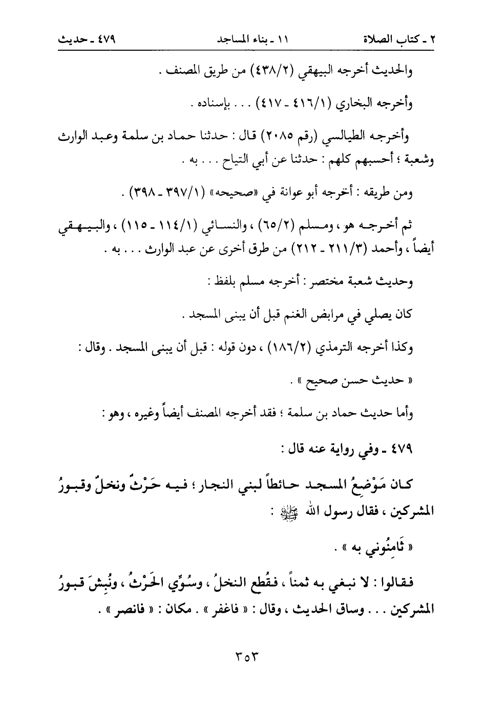 وأما حديث حماد بن سلمة؛ فقد أخرجه المصنف أيضا وغيره، وهو: