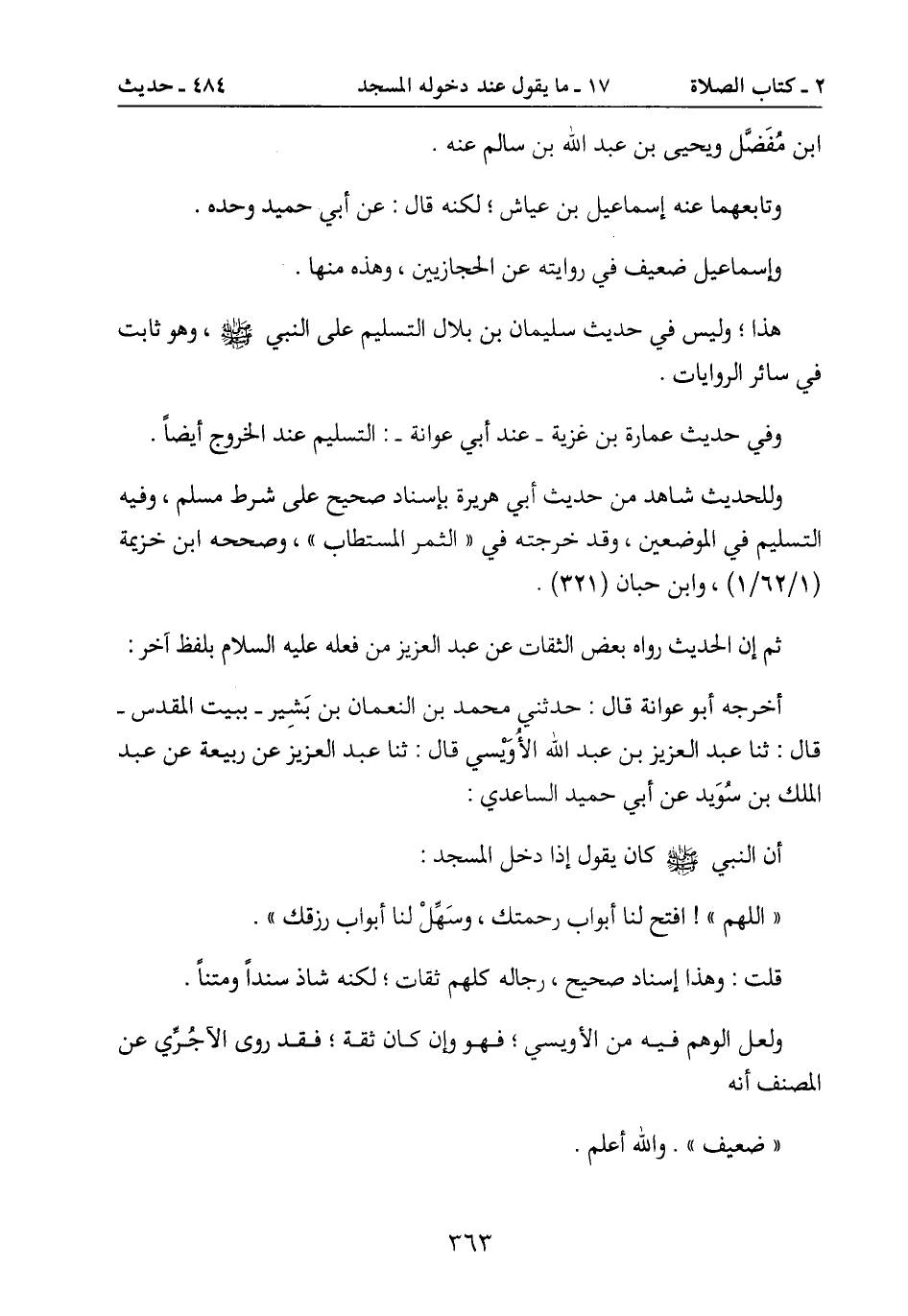 أن النبي صَلَّى اللَّهُ عَلَيْهِ وَسَلَّمَ كان يقول إذا دخل المسجد: